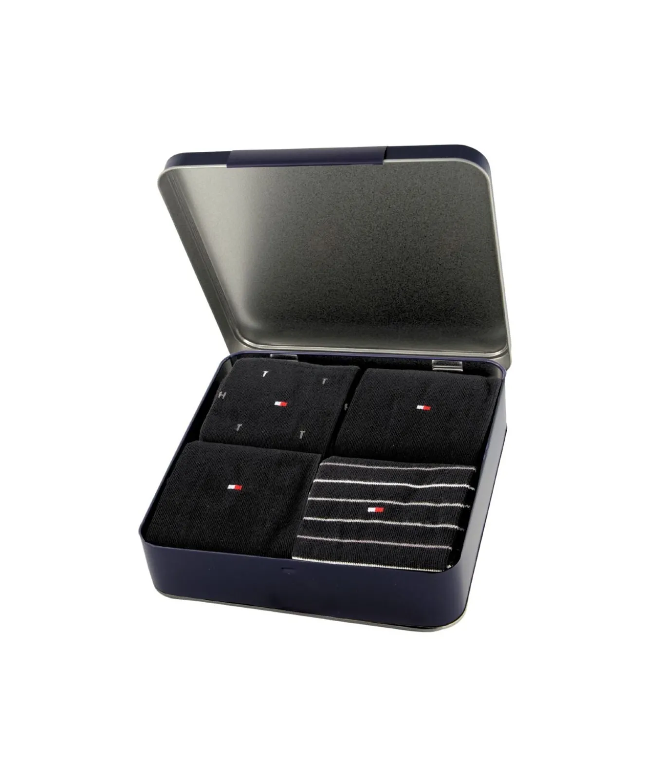 4 paar sokken in de kleur zwart waarvan 2 paar uni, 2 paar met motief van Tommy Hilfiger in een voordeelpack