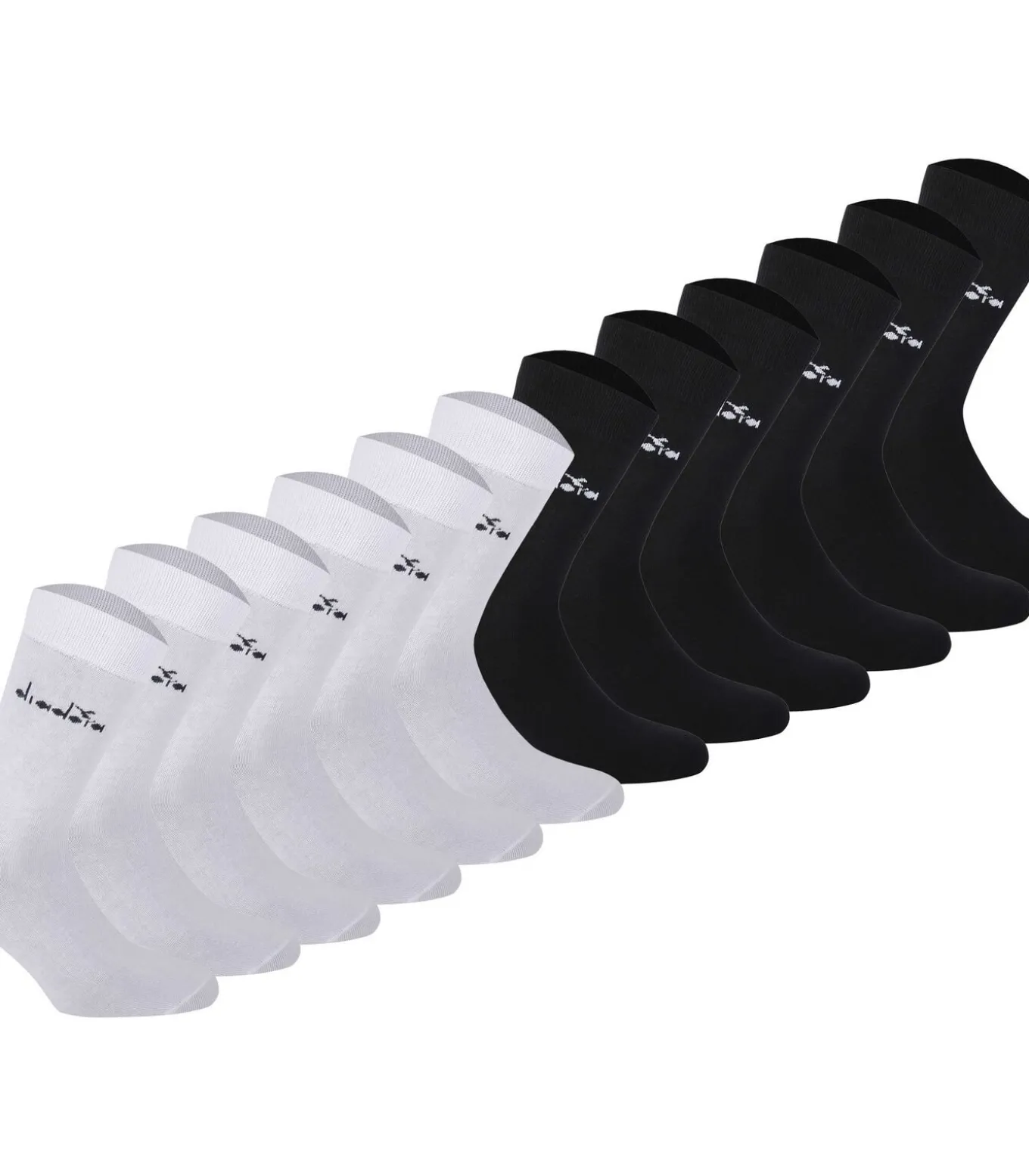 Uniseks sokken voor dames en heren van het merk Diadora. In een praktische verpakking van 12 stuks. Effen model met logo op de zijkant. Aangename katoenmix.