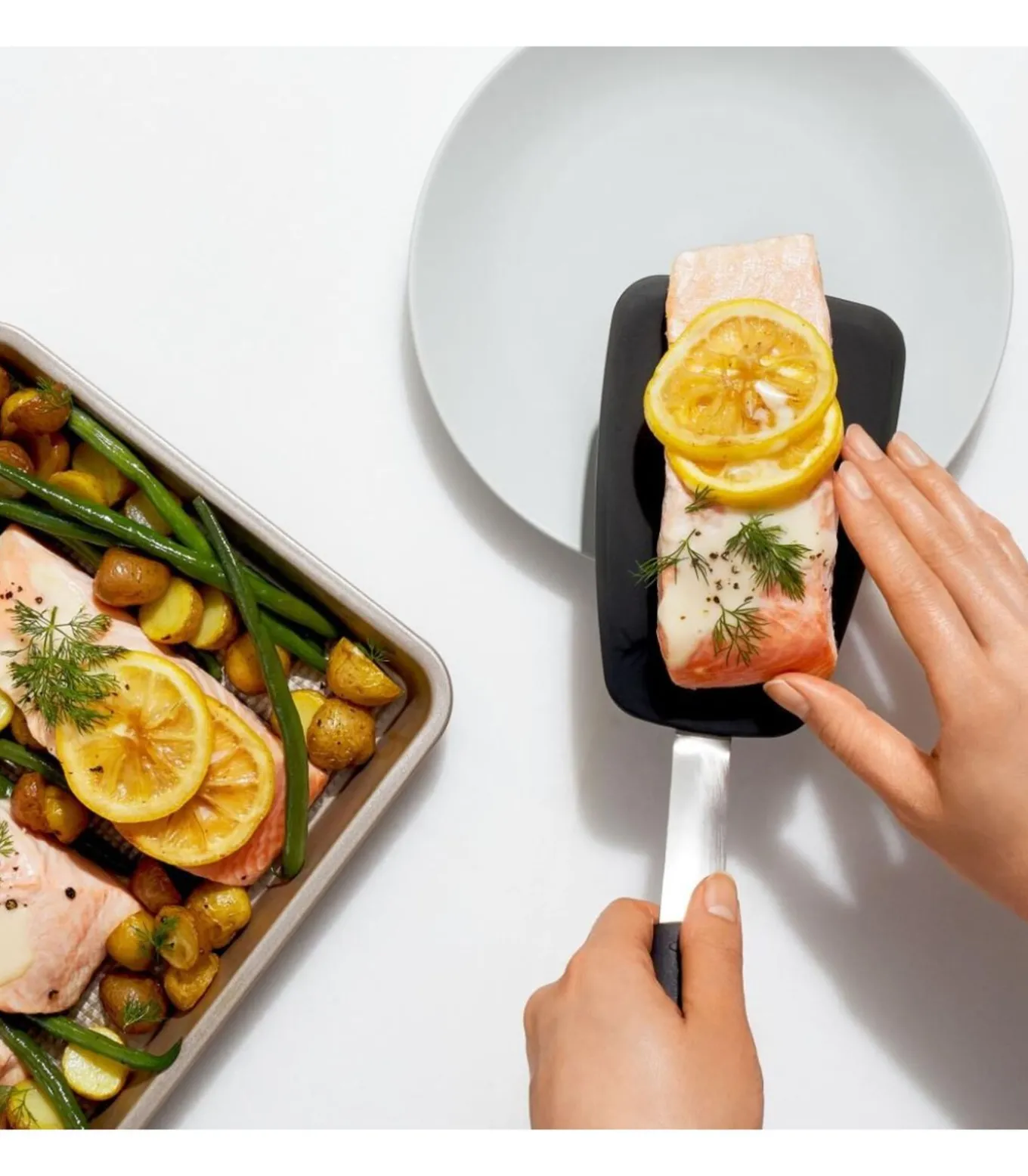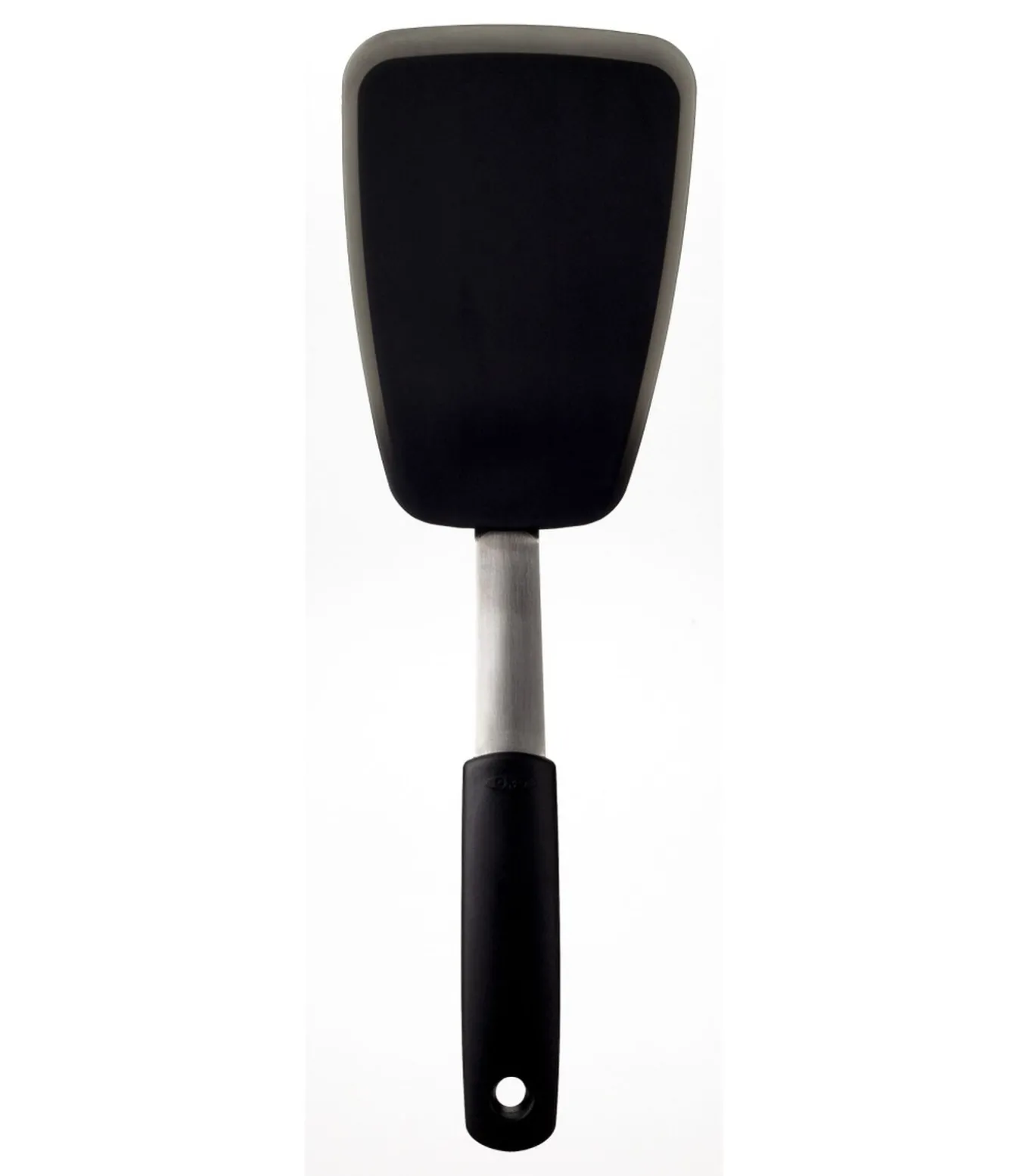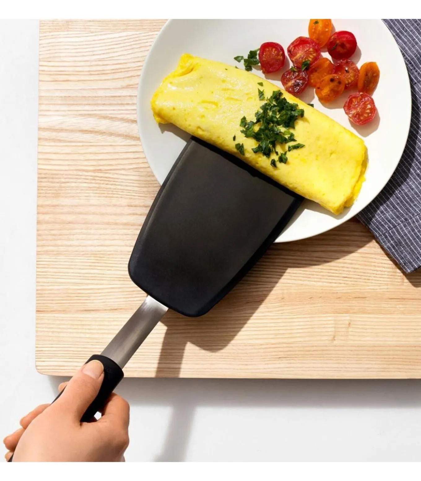 Pannenkoeken, eieren of hamburgers draaien zal geen moeite meer zijn met de OXO Spatel Siliconen 32 cm. OXO combineert de kracht van roestvrij staal met de voordelen van siliconen. Zo is de spatel stevig, maar heeft toch fijn om mee te werken. De anti–kleef buitenlaag is bestendig tegen temperaturen van 300°C. De OXO Spatel Siliconen 32 cm fijn in de hand door de siliconen buitenlaag. Tevens is de spatel vaatwasserbestendig en makkelijk op te bergen door het gaatje aan de onderkant van de handvat.