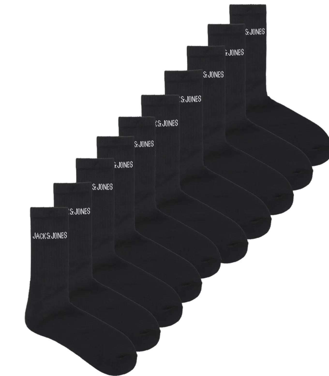 Deze set van 10 paar zwarte crew sokken in maat 41/46 is perfect voor de sportieve man die op zoek is naar comfort en functionaliteit. De sokken zijn gemaakt van hoogwaardig katoen met vochtafvoerende technologie, waardoor je voeten droog en fris blijven tijdens het sporten. De sokken hebben een versterkte hiel en teen voor extra duurzaamheid en optimale ondersteuning.**De voordelen van de Jack & Jones JACREGEN sportsokken:**