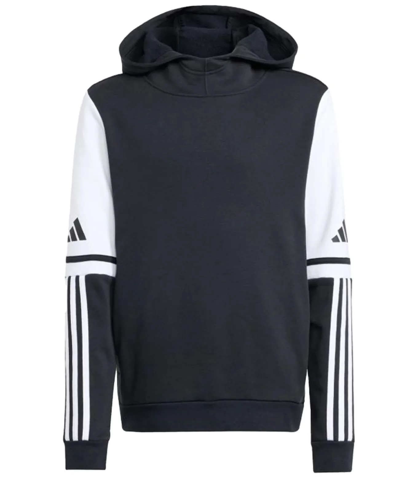 Adidas Squadra 25 – Zwarte T–shirt met kap voor jongens, gemaakt van katoen en hergebruikte polyester. Dit ontwerp kenmerkt zich door contrastdetails, het logo van Adidas en een zijstreep. De kop en de manchetten zijn elastisch, terwijl de halslijn een kapiteinshals is. Het ontwerp heeft lange mouwen en de achterkant is aan te trekken voor een goede passing. Voor jongens van 7–8 jaar kan de grootte 25 inch worden gedragen, terwijl kinderen tussen de 9–10 jaar een grootte 28 inch hebben en kinderen tussen de 11–12 jaar een grootte 30,5 inch. Jongens van 13–14 jaar kunnen zich het beste vestigen in de grootte 34 inch.