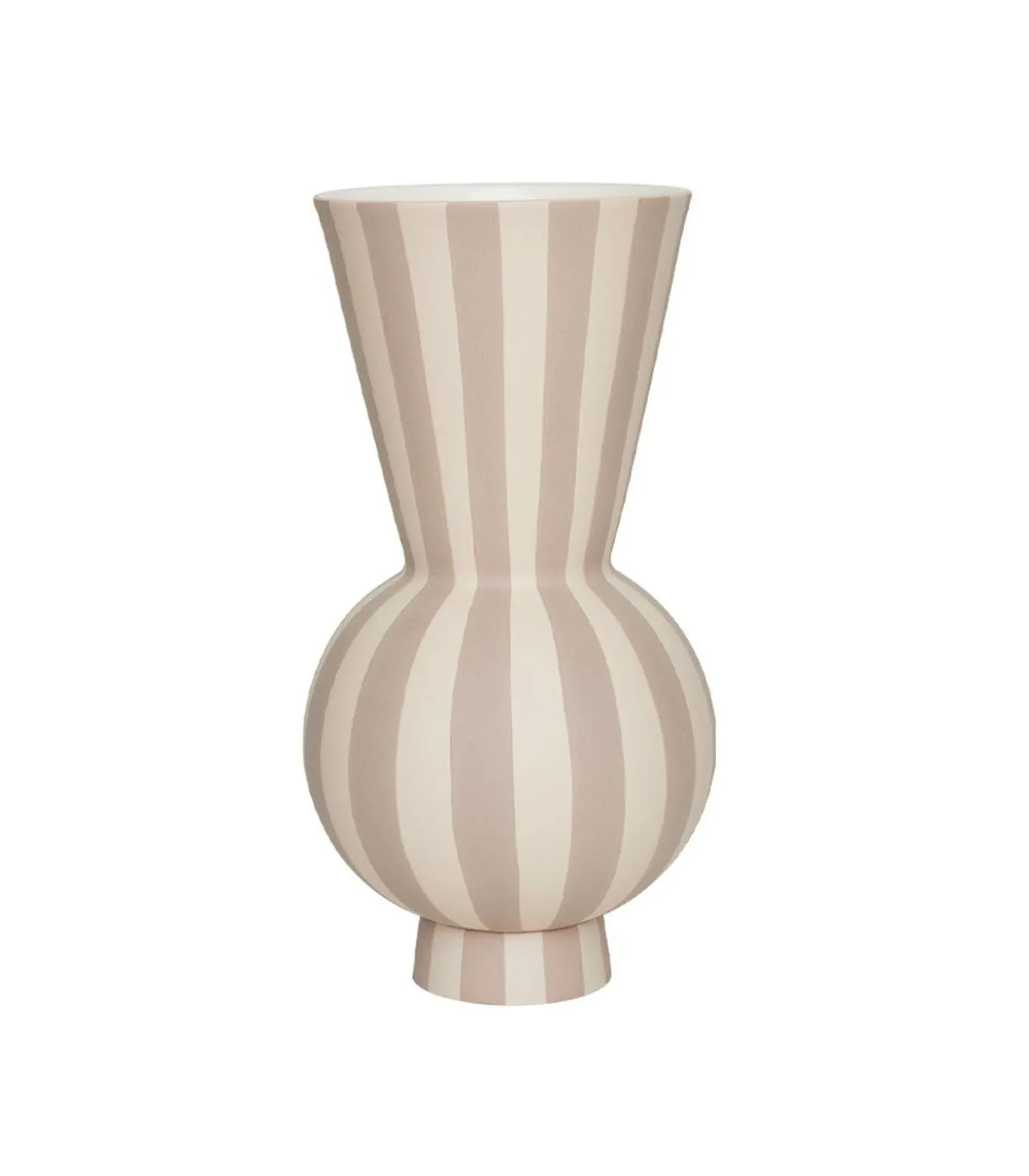 De Toppu ronde vaas is een geliefde toevoeging aan de Toppu familie en een OYOY klassieker. Handgemaakt met precisie, schildert een team van hoogopgeleide vrouwen delicaat elke streep, waarmee ze hun expertise laten zien. Hetzelfde toegewijde team maakt alle Toppu artikelen, zodat je verzekerd bent van consistent vakmanschap. Het doordachte ontwerp van de vaas voegt niet alleen een vleugje elegantie toe, maar zorgt er ook voor dat bloemen mooi staan, waardoor het een perfecte mix is van vorm en functie.