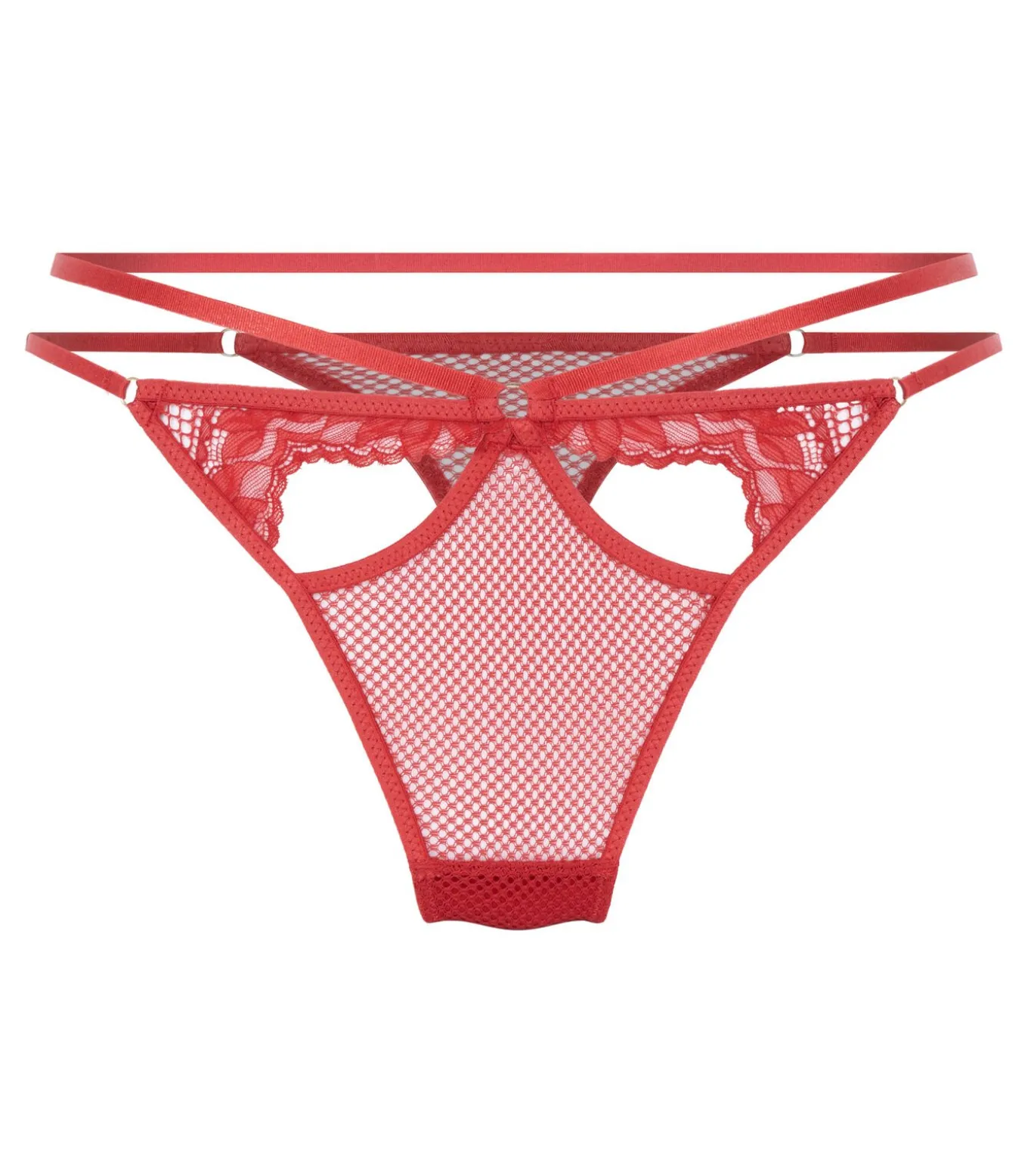 Maak een statement met deze gewaagde string, ontworpen voor wie graag opvallende texturen combineert met delicate details. Dit model is voorzien van een opvallende combinatie van visnetstof en is voorzien van uitsparingen die het geheel een moderne twist geven. Combineer hem met de bijpassende bh voor een complete look.