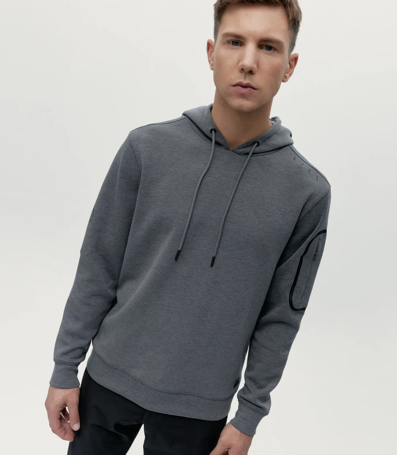 Hoodie dubbel capuchon sport sweatshirt. “Sku_Fly” stof. Warmte afdichtende zaktechnologie op de mouw met ritssluiting. Verstelbaar snoer.• Duurzame vezels• 4–weg stretchstof• Extra zacht aanvoelend• Sneldrogend• Antibacterieel• Antistatisch