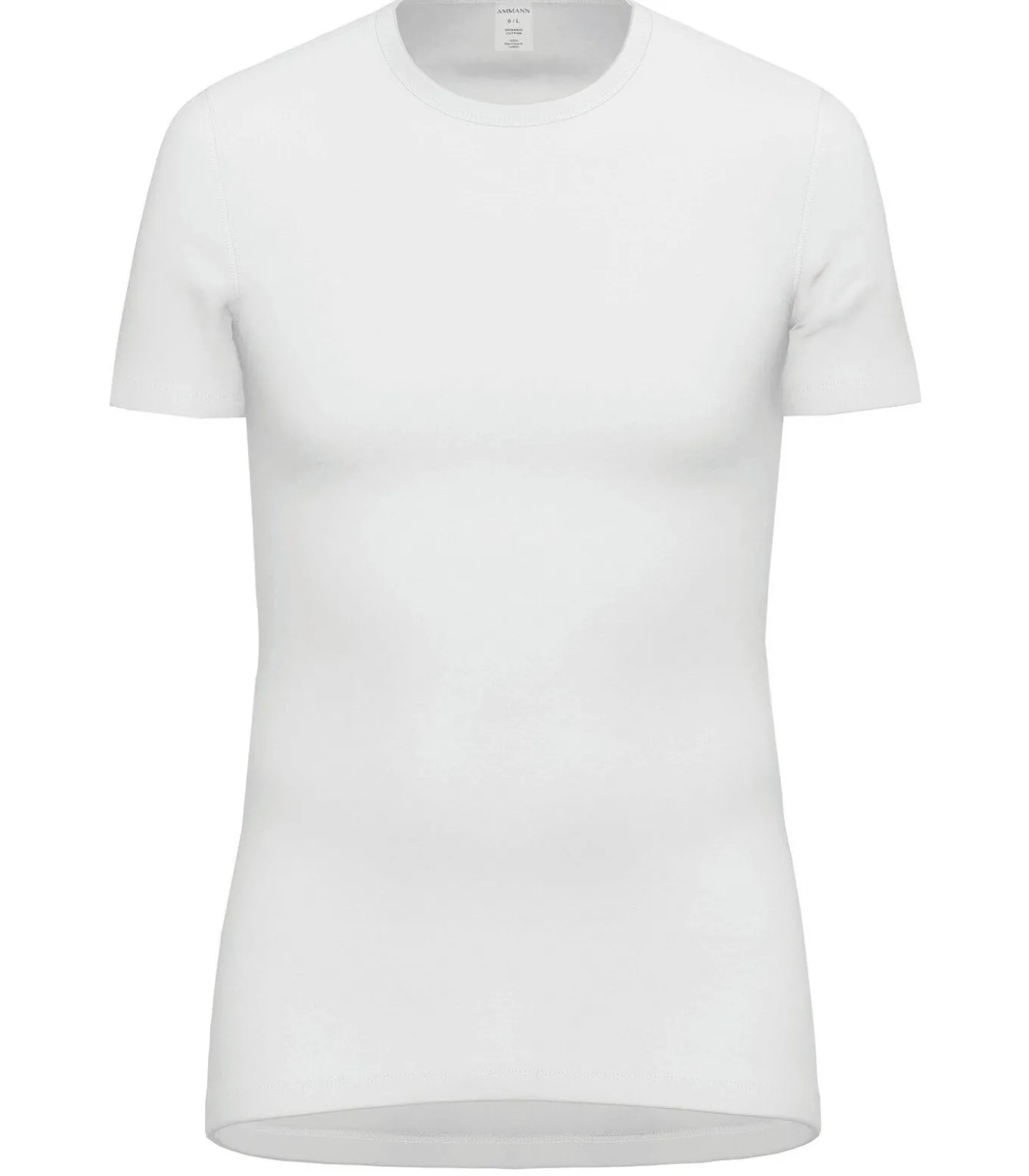 Heren–T–shirt van AMMANN met verlengde rug. Effen fijn rib shirt met korte mouwen van zuiver katoen. Hoge kwaliteit.