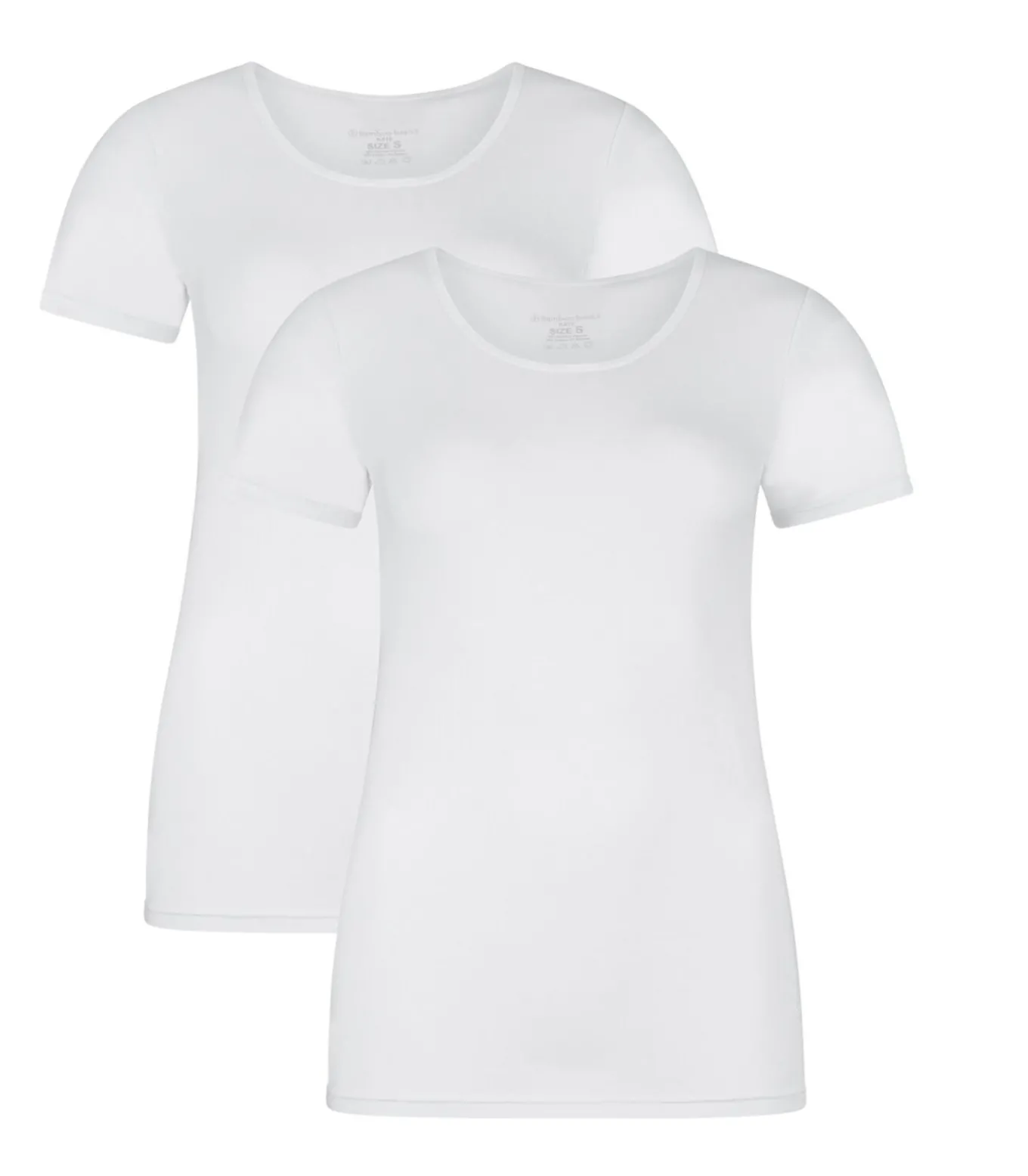 2 shirts met ronde hals van het merk Bamboo basics gemaakt van zachte single jersey met viscose (gemaakt van bamboepulp) voor langdurig comfort. Ademend, antibacterieel en elastisch.