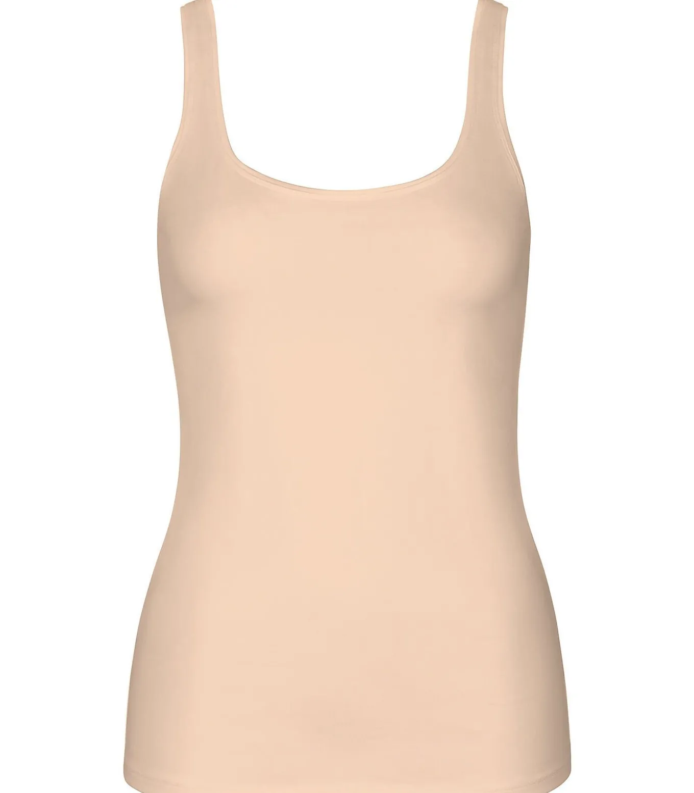 Comfortabele en praktische top met brede bandjes, dagelijkse onderkleding van katoen met elastaan. Het kan worden gedragen als ondergoed of als bovenkleding. Easy care.