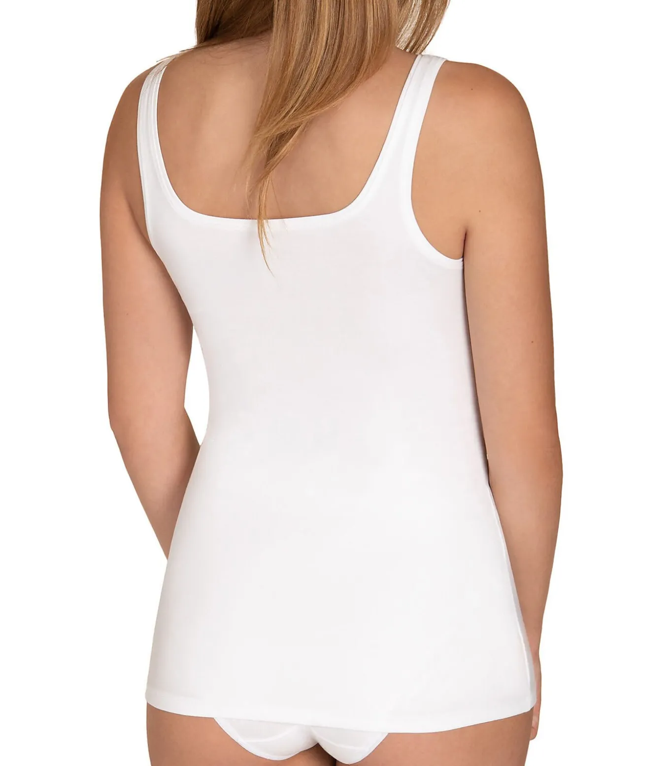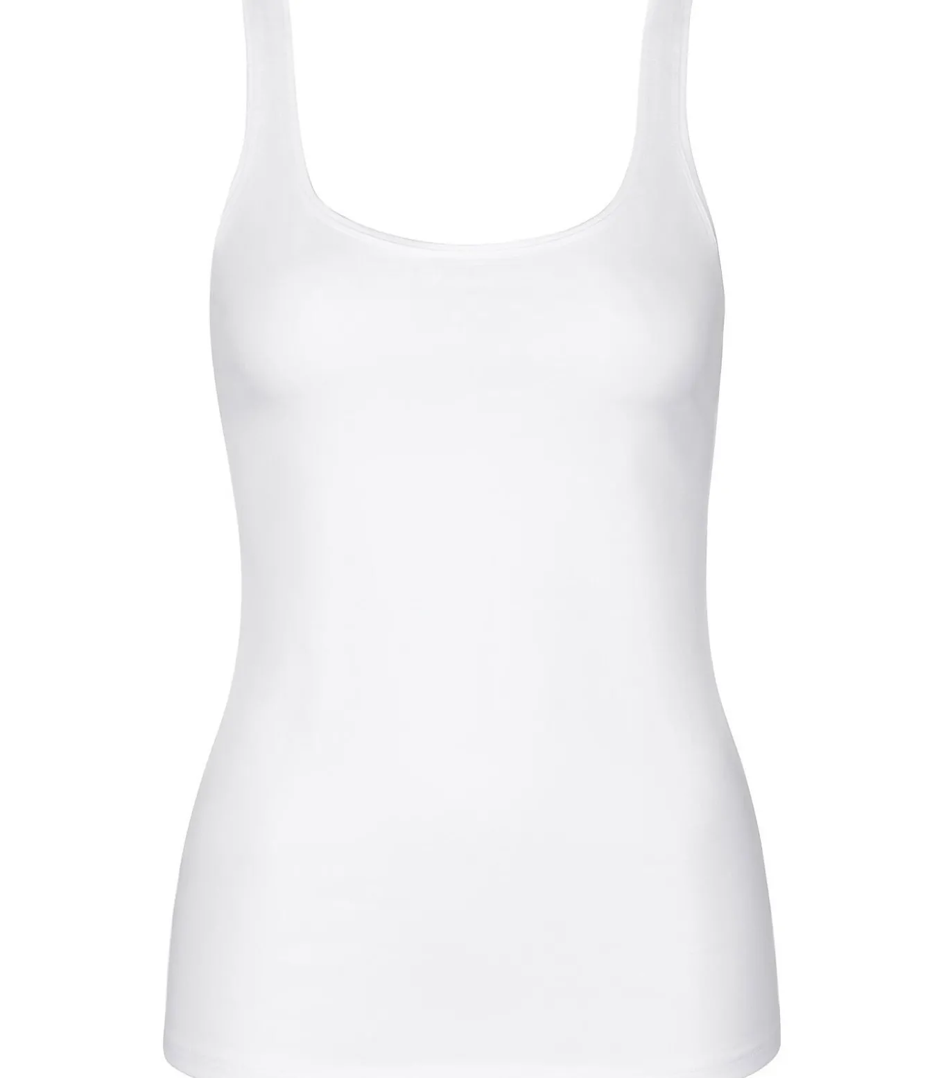 Comfortabele en praktische top met brede bandjes, dagelijkse onderkleding van katoen met elastaan. Het kan worden gedragen als ondergoed of als bovenkleding. Easy care.