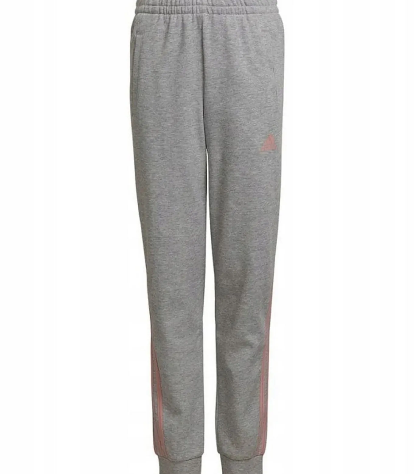 Adidas roze tapered–leg joggingbroek gemaakt van 67% katoen en 33% gerecycled polyester met zachte aanraking. Het ontwerp omvat het Adidas logo en een zijstreep, met taps toelopende poten. Deze jas heeft twee zijzakken en de taille is elastisch, binnenkoord. De manchet is gemonteerd.