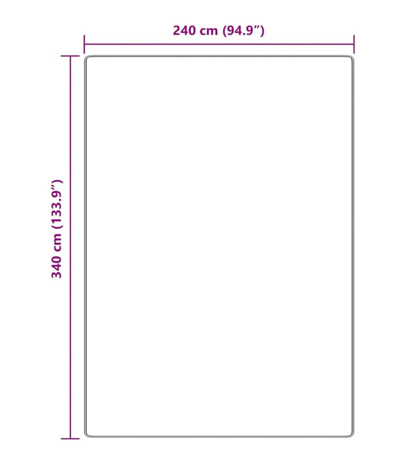 Algemene afmetingen: 240 x 340 x 2 cm (L x B x H)