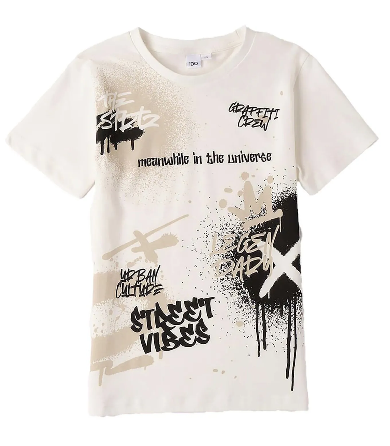 Kleur: gebroken wit. Samenstelling: 100% katoen. Mouwen: kort. Details: T–shirt van puur katoenen jersey met prints met een urban thema voor een dynamische en moderne look. Gebruik: perfect voor school en vrije tijd, ideaal voor het creëren van casual outfits met een metropolitan stijl.