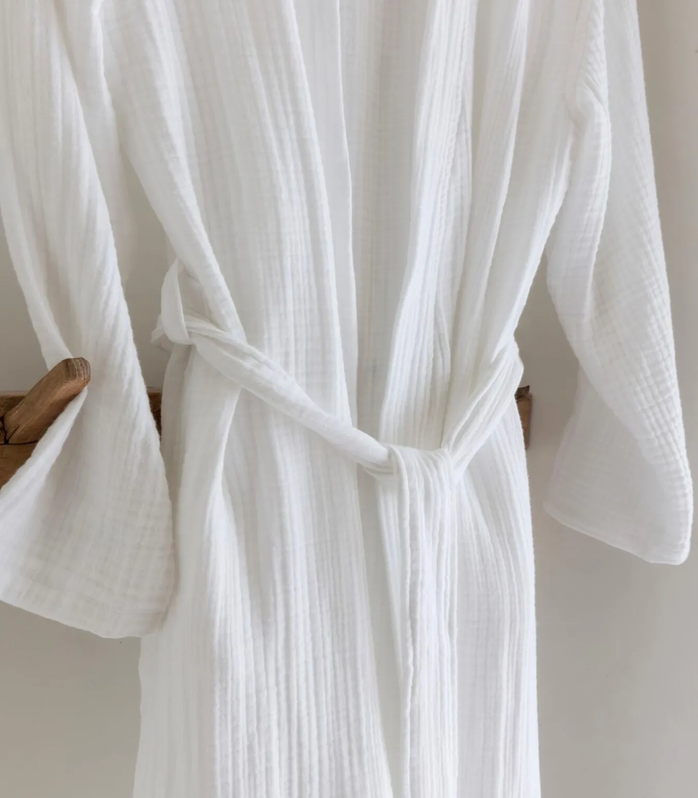 – Droger: de badjas mag in de droger, maar krimpt dan nog 5%. Dit is eigen aan de stof