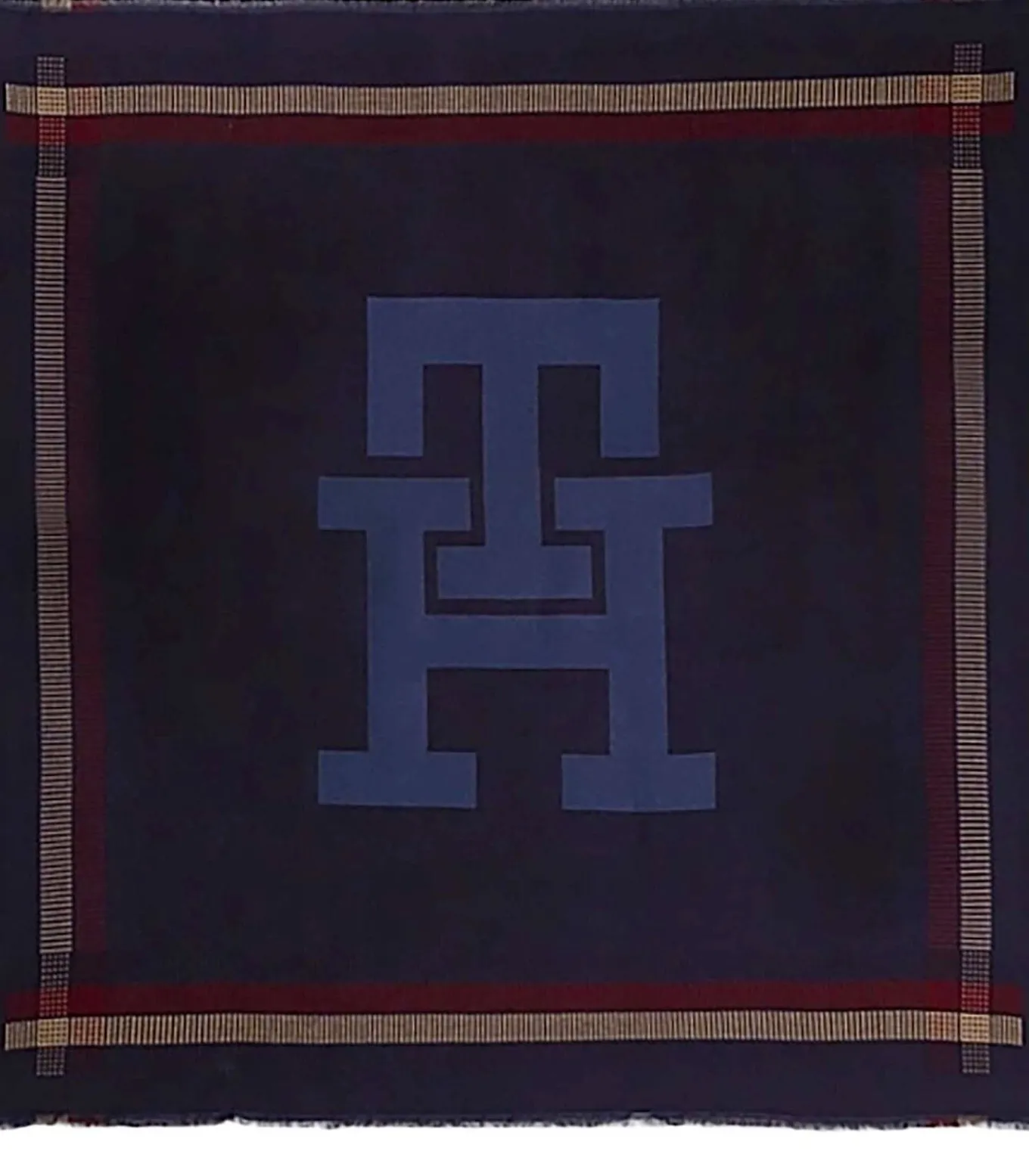 Kleur: Corp Mix Samenstelling: 100% katoen Details: Lichtgewicht sjaal van puur katoen met gerafelde rand en maxi–TH–monogram in het midden. Het verfijnde ontwerp en de discrete branding maken het een perfect accessoire om elke outfit een onderscheidende touch te geven. Gebruik: Ideaal om om de nek, in het haar of aan de tas te dragen voor een elegante of casual look met een tijdloos accent.