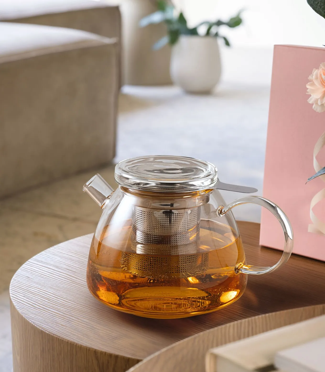 Nach der Ziehzeit den Deckel immer mit dem Griff am Teesieb abnehmen.