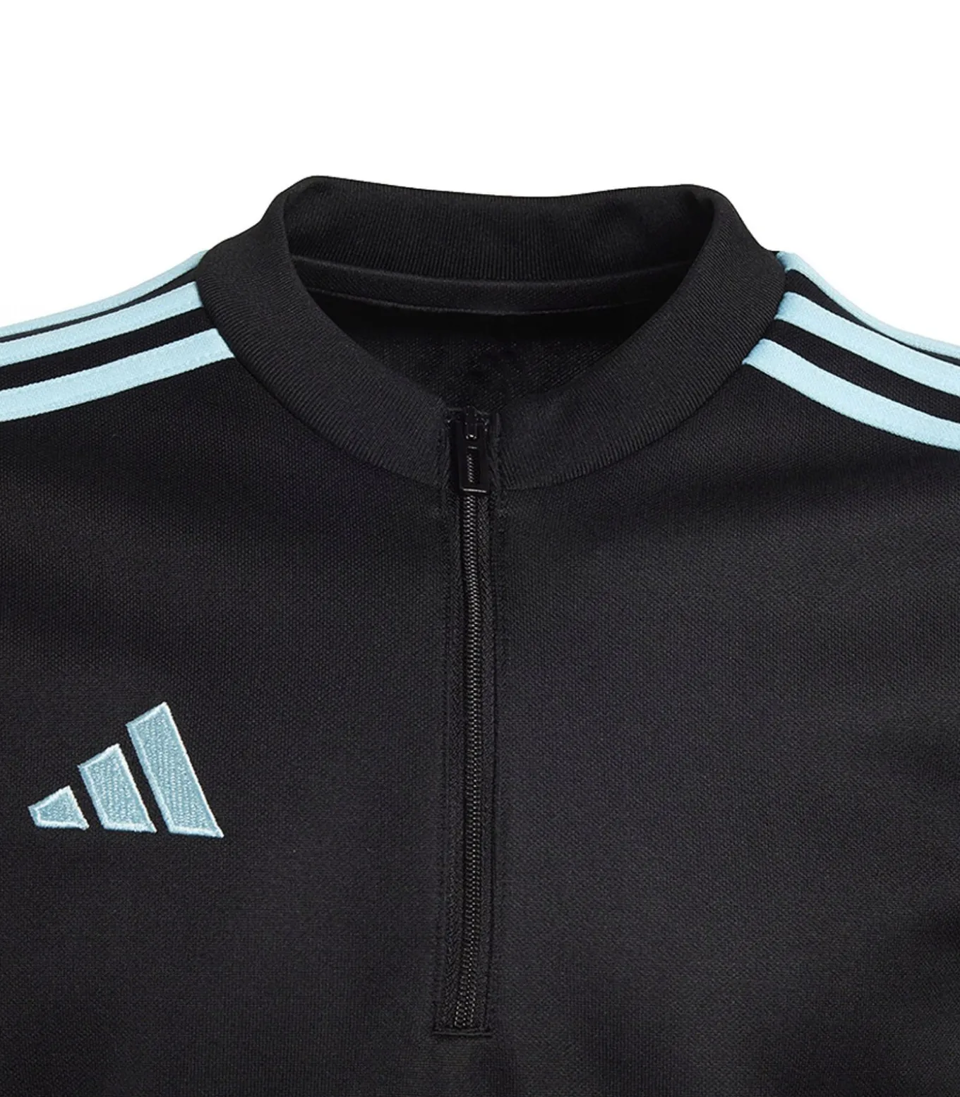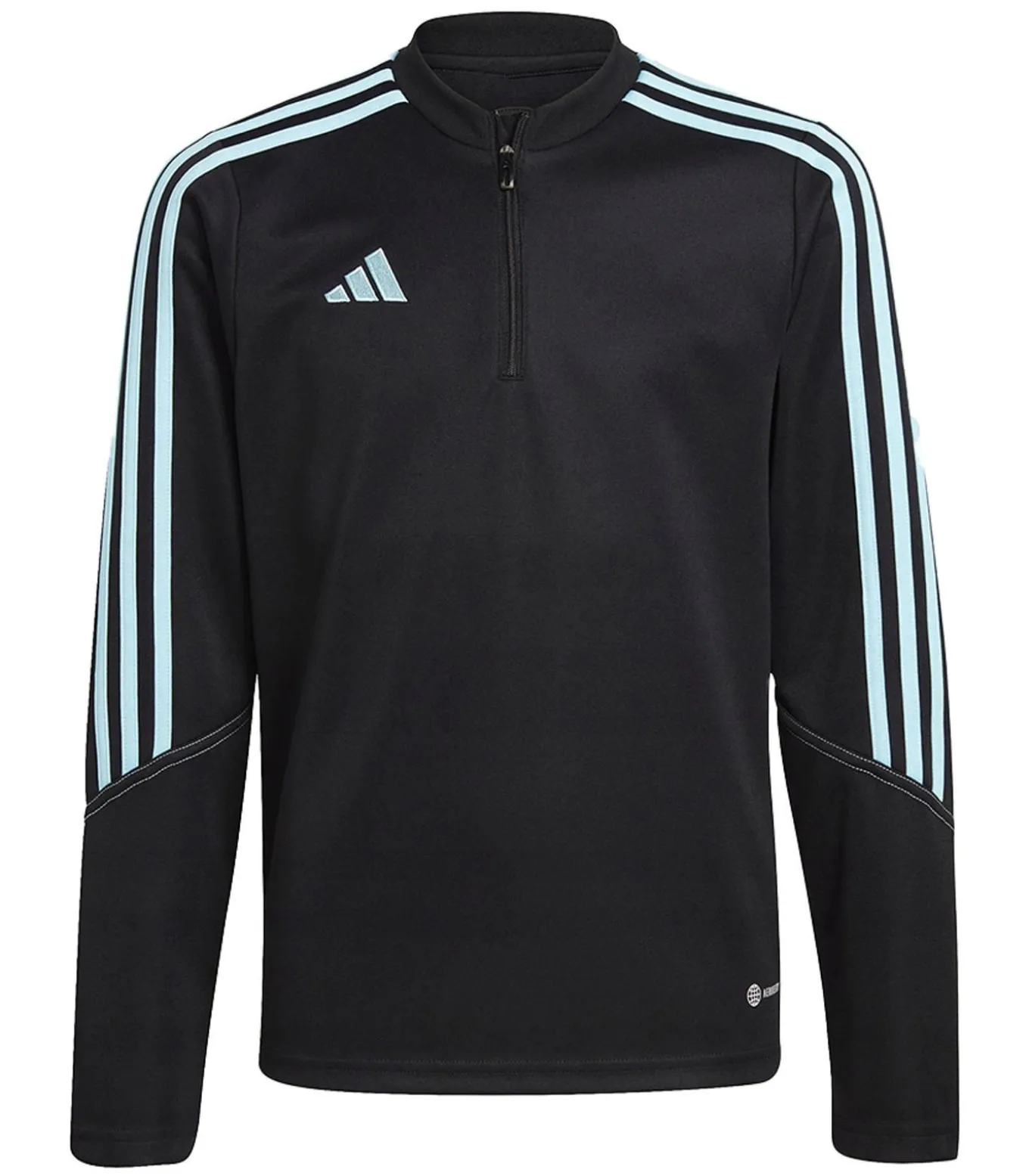 Adidas TIRO 23 CLUB Zwarte Sweater, gemaakt van 100% hergebruikbaar polyester. Het ontwerp is met het logo en gestreept bedrukt. De technologie voor de stof is Aeroready. Het heeft lange mouwen en een staande kraaghals. Het past op maat en heeft een pull over, kwart rits sluiting. Het is geschikt voor lengtes van 12 jaar (30,5 inch), 10 jaar (28 inch), 6 jaar (24 inch), 8 jaar (25 inch) en 14 jaar (34 inch).