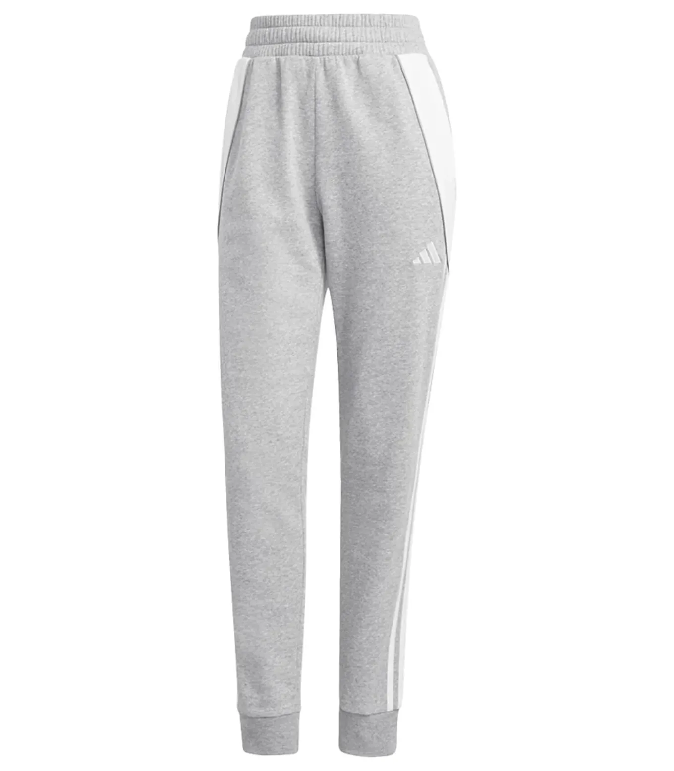 Adidas–tiró 24 – joggingbroek – grijs met een samenstelling van 70% katoen en 30% gerecycleerd polyester. Deze joggingbroek heeft een vliesstof, zachte aanraking. Het ontwerp van het broek bevat een geborduurd Adidas logo, een paneel detail, een gedrukt, gestreepte uiterlijk. De stoftechnologie van het broek is ademend en duurzaam. Het broek heeft taps toelopende poot, twee zijzakken met rits. De taille kan versteld worden middels koordje en elastiek. Dit broek is geschikt voor reguliere gebruik en heeft een ribbelmanchet. Het is bedoeld voor training.