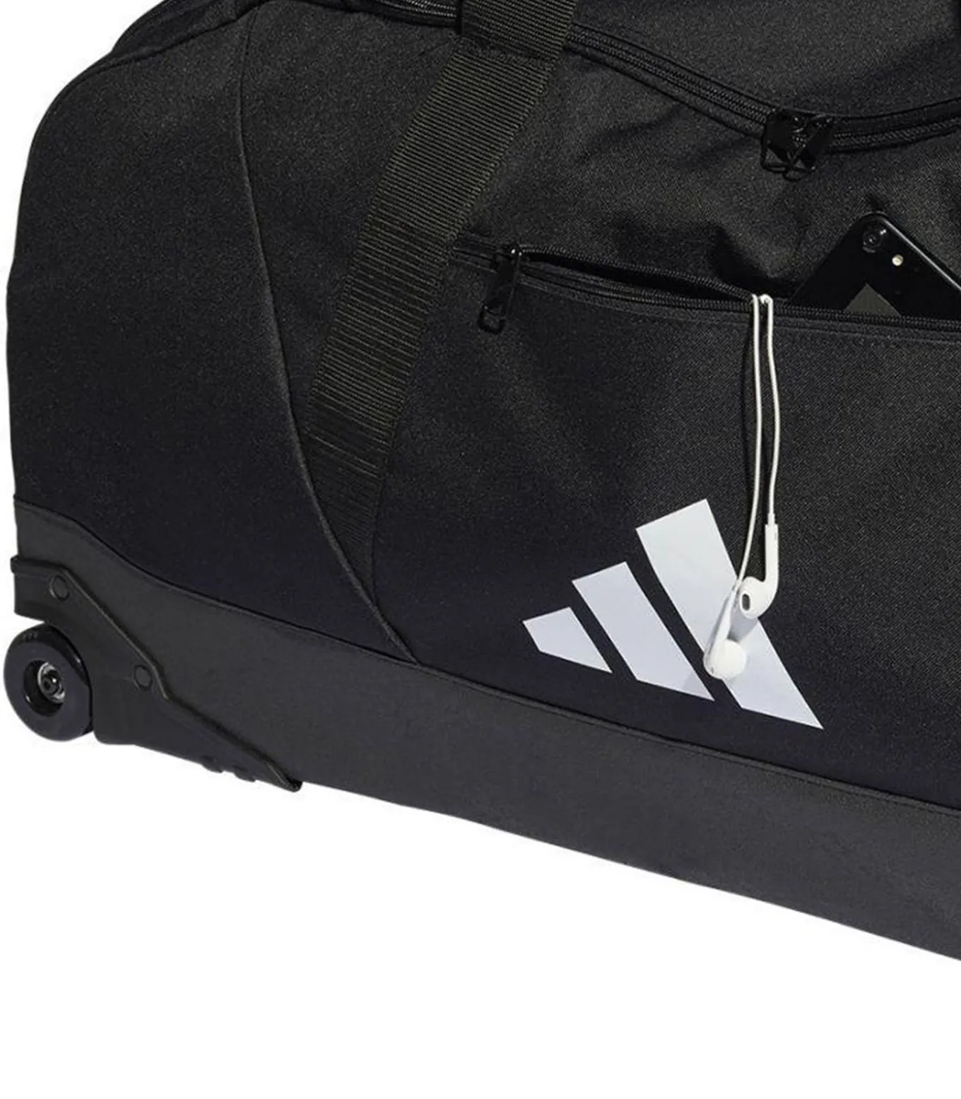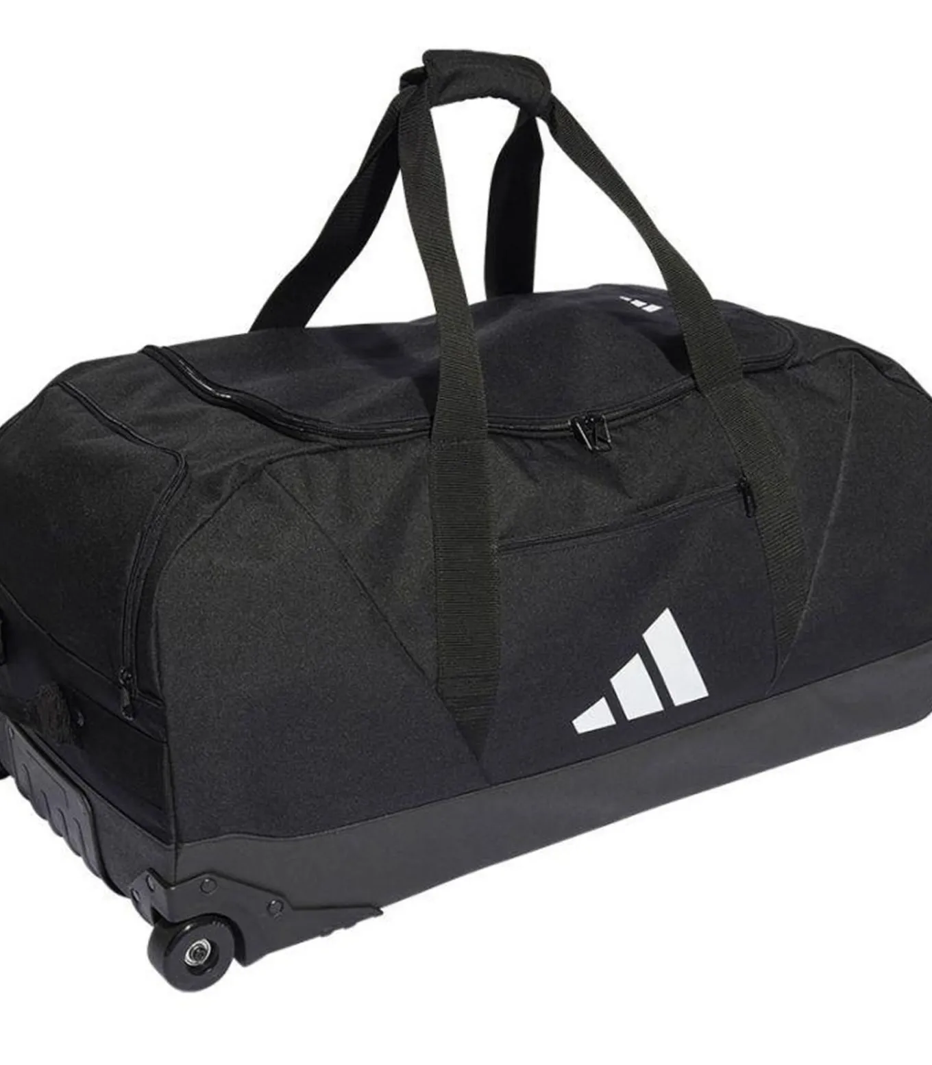 Adidas’s TIRO Zwart Tas is gemaakt van 100% hergebruikt polyester. Het materiaal is een glad weefsel met een lengte van 90cm, breedte van 45cm en hoogte van 45cm, en biedt een inhoud van 132.7L. De tas heeft drie zakken: één voorzak, één zijzak en één binnenzak met ritssluiting. Het hoofdvat bevat een rits en de tas heeft twee wielen, een draaggreep, een versterkte basis, een intrekbare handgreep en een handsteun met aanraaksluiting. Het ontwerp is eenvoudig met het Adidas–logo. De stoftechnologie van deze tas is waterdicht.