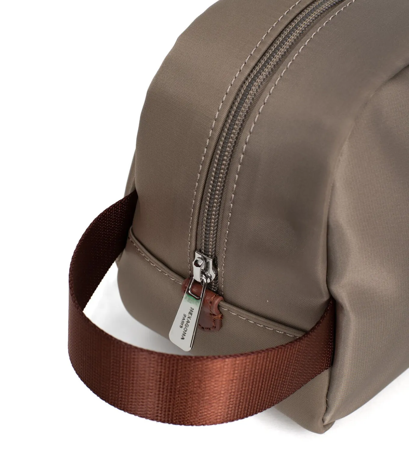 Materiaal: nylon afgezet met rundsplitleer.