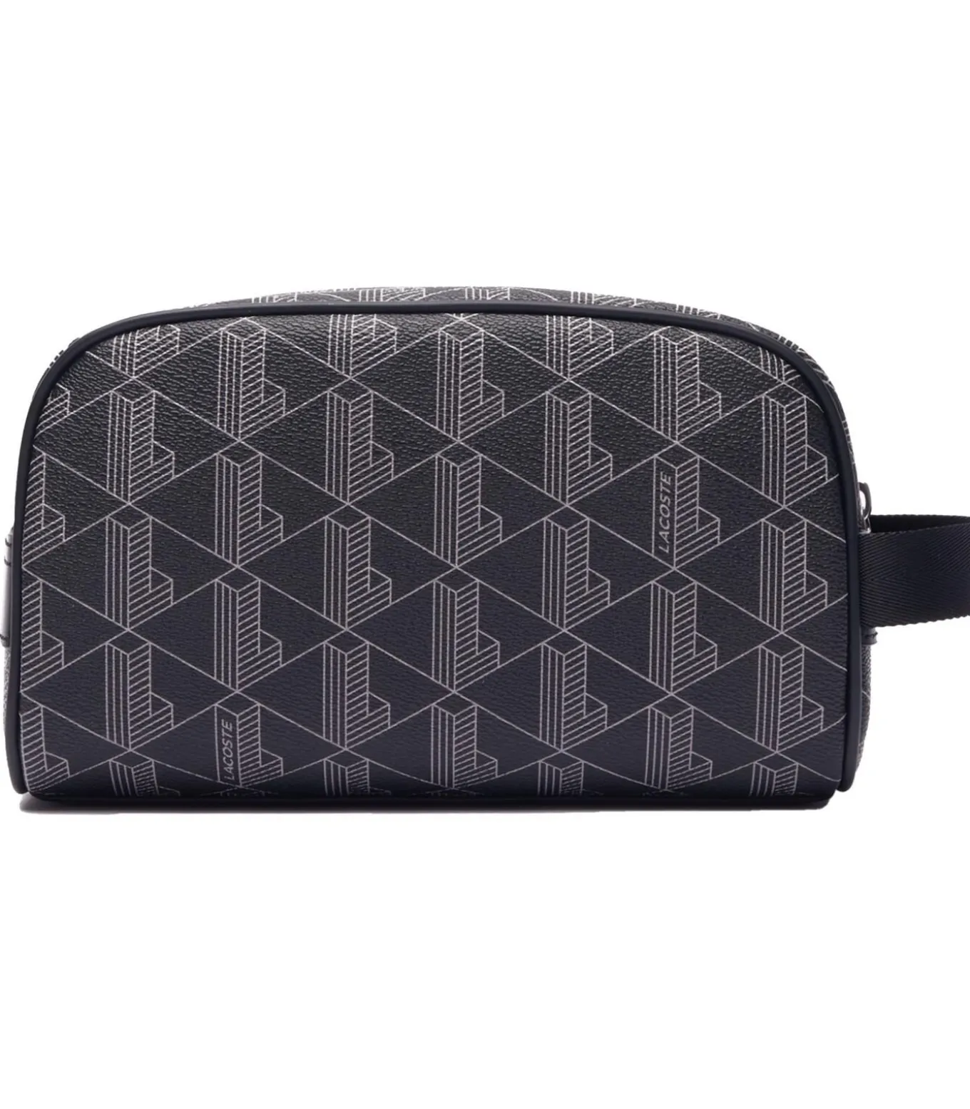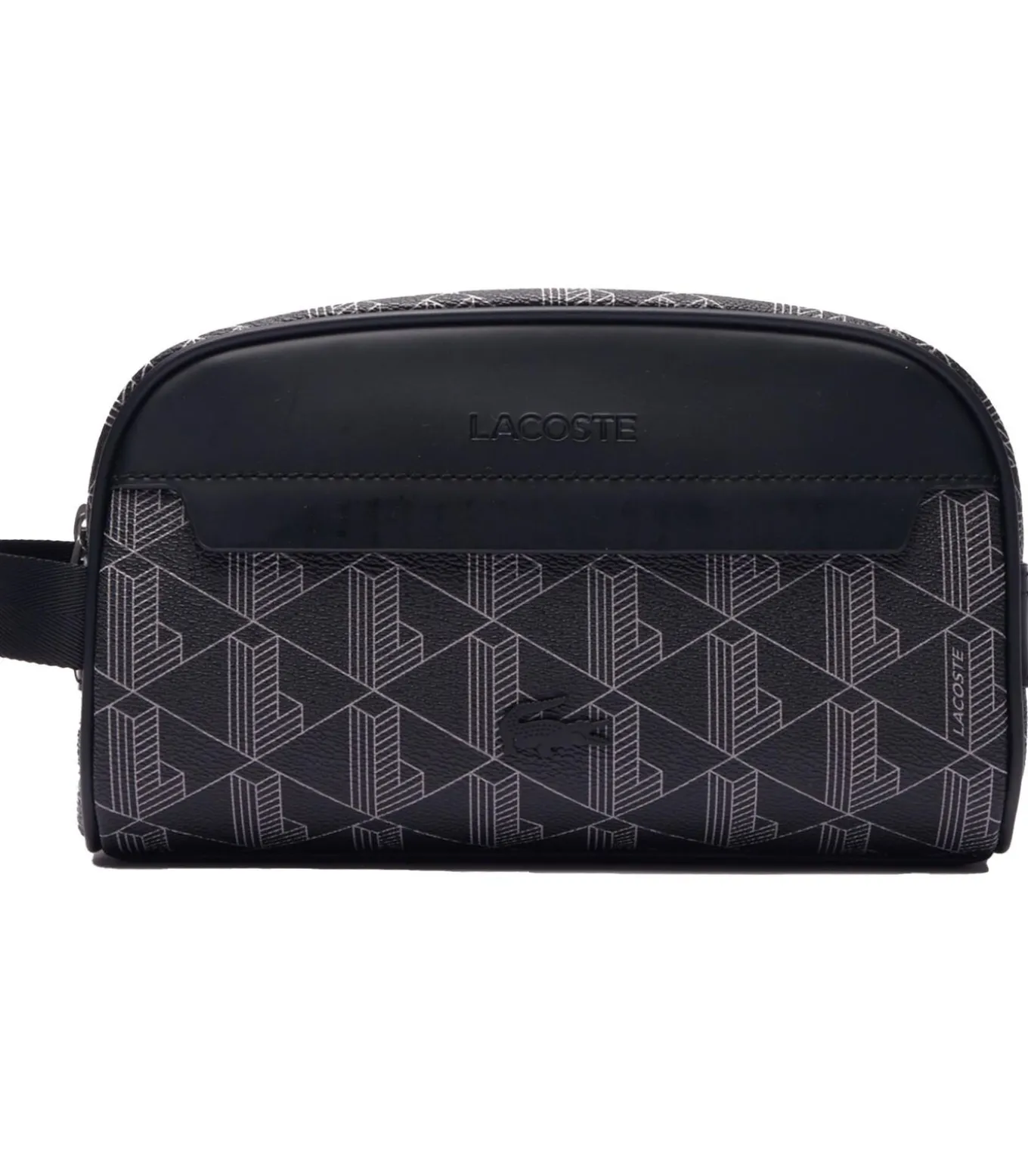 Hoogwaardige toilettas voor heren van het merk LACOSTE. Kleine toilettas met monogramprint en handband.