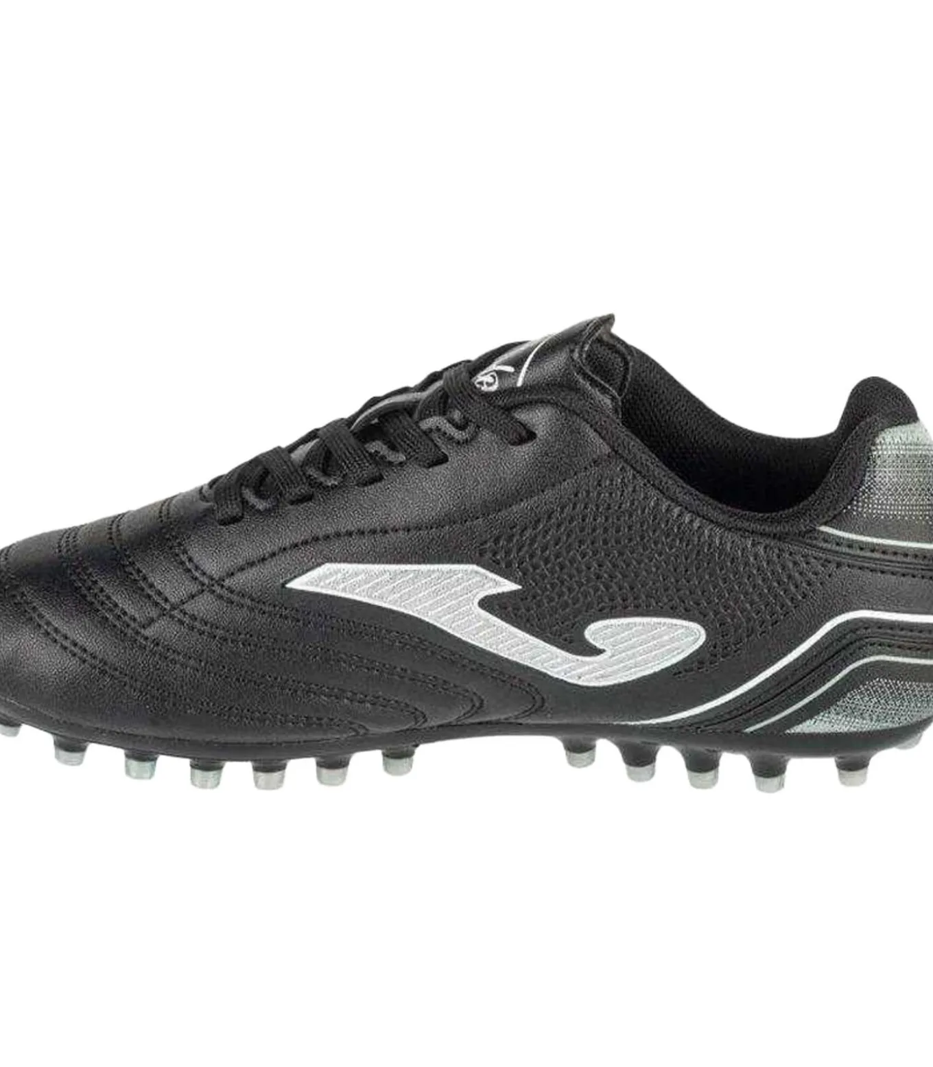 Joma TOLEDO 2401 zwart synthetisch–leder schoenen met rubber buitenzool en versterkt binnenzool. Dit model heeft een lage snit, contrastdetails, logo’s en teksten in het ontwerp. Deze ronde schoenen zijn geschikt voor kunstgras en hebben een vetersluiting. Ook is de schoenplaat aanwezig om het gewicht licht te houden en heeft de buitenzool duurzaam voettechnologie.