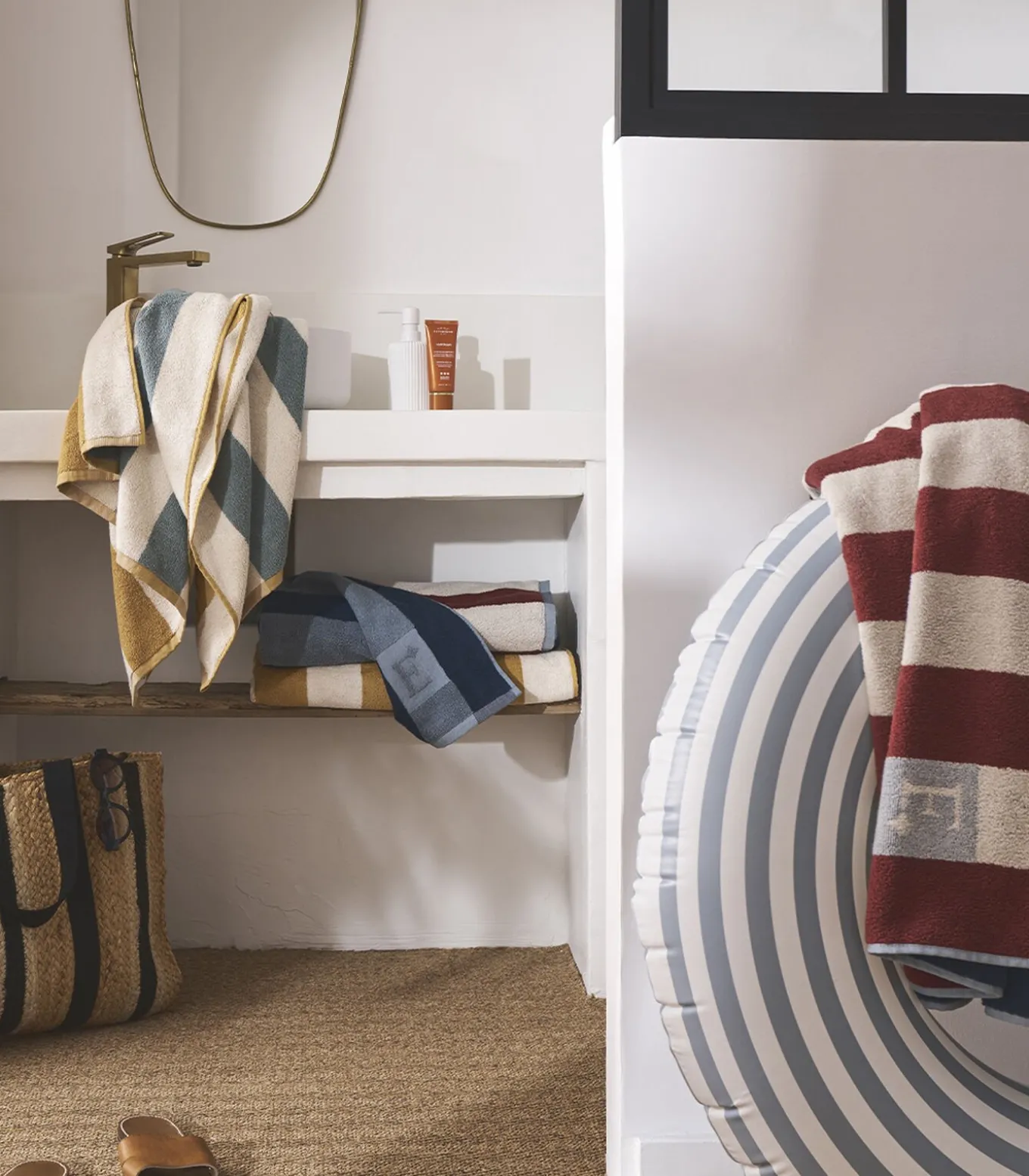 Wat zoeken we in een strandlaken? Stijl natuurlijk, maar vooral ongeëvenaard comfort. Of u zich er nu mee afdroogt na het zwemmen of erop ontspant in de zon, ons model Transat is ontworpen om de best mogelijke ervaring te bieden. Wat Transat zo speciaal maakt, zijn de twee kanten, die twee verschillende stijlen bieden! Ons dubbelzijdig ontworpen strandlaken past zich aan uw behoeften aan. Gebruik de ene kant ’s ochtends voor het strand en de andere kant ’s middags voor het zwembad: hij is ontworpen om er de hele dag plezier van te hebben. Levendige kleuren of zachtere tinten, het is aan u om te kiezen wat het beste bij u past!