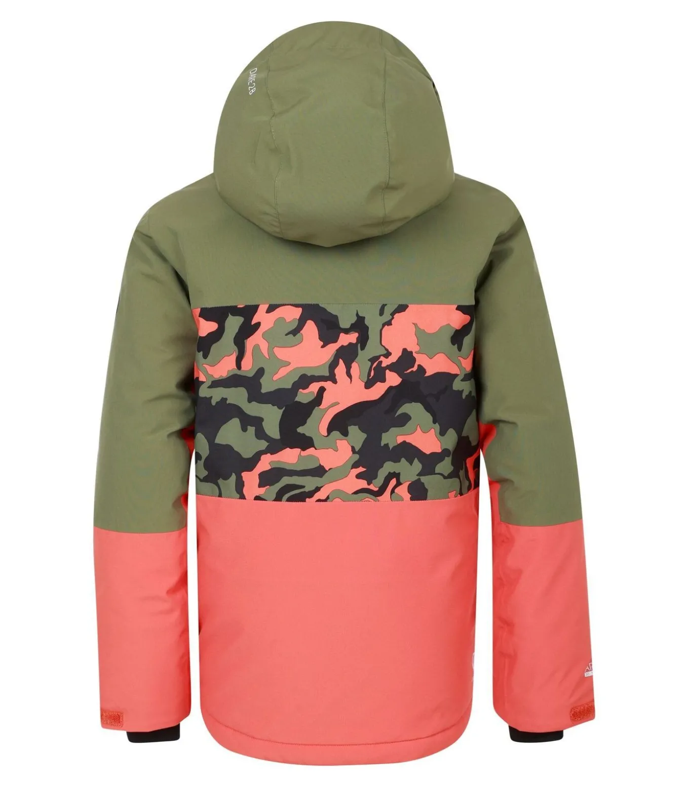 Het Dare 2B TRAVERSE II jasje in koraal is gemaakt van hergebruikt polyester en heeft een kraag, rekende stof, verschillende uitvoeringen zoals camouflage, kleurenblok en logo. De stof is voorzien van de ARED 30/30–technologie, is ademend, warm, PFC–vrij, PFOA–vrij, PFOS–vrij, douchebestendig, waterafstotend en waterdicht. Het manchet is verstelbaar met stretch aan de binnenzijde en is uitgerust met een lusje met drukknoopsluiting. De halslijn is in captain–stijl. Het jasje heeft mouwen van lengte, gewatteerde, reflecterende details, gekartelde rugpant, sneeuwrok en getapete naad. De kap is elastisch en gegroeid op de kop. Dit jasje beschikt over een skipazaak, één borstzak, twee onderzakken, ritssluiting, één binnenzak en een opslagzak. Het heeft volledige ritssluiting. Opmerking: Shockcord Hem is geschikt voor kinderen van 7 jaar en ouder. De afmetingen zijn als volgt: 5–6 jaar (24 in), 13 jaar (32 in), 7–8 jaar (26 in), 9–10 jaar (28,5 in), 15–16 jaar (36 in) en 14 jaar (33 in).
