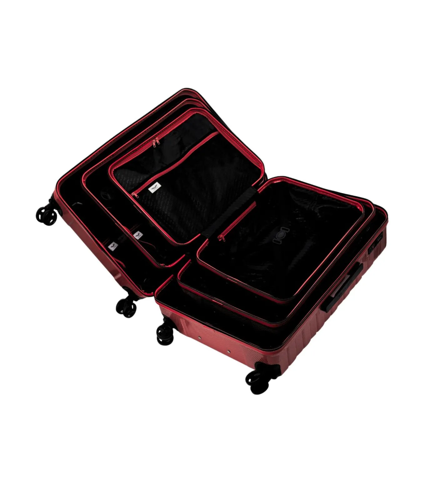 De WINGS CRAKE kofferset bestaat uit drie hardschalige koffers van hoge kwaliteit in de maten S, M en L. Alle modellen zijn gemaakt van polycarbonaat en bieden een uitzonderlijke stootvastheid, krasbestendigheid en een lange levensduur – perfect voor frequente reizigers die waarde hechten aan veiligheid en kwaliteit. Het stijlvolle honingraatoppervlak zorgt niet alleen voor stabiliteit, maar geeft de set ook een elegante, moderne uitstraling.Elke koffer heeft een TSA–combinatieslot, dat zorgt voor maximale veiligheid bij internationale reizen – vooral in landen zoals de VS, Canada of Australië, waar deze functie vereist is bij de douane. De vier 360° wielen met dubbele lagers zorgen voor stil, licht en stabiel reizen, zelfs op oneffen oppervlakken. De in hoogte verstelbare telescoopstang past zich flexibel aan elke lichaamsgrootte aan en biedt maximaal comfort tijdens het transport.Het interieur van alle drie de koffers is goed doordacht: Twee ruime hoofdcompartimenten – één met ritssluiting, de andere met elastische inpakriemen – zorgen ervoor dat de bagage gestructureerd en veilig kan worden opgeborgen. Extra vakken van gaas en accessoires maken het makkelijker om cosmetica, technologie of reisdocumenten op te bergen. De zwarte binnenbekleding met logo rondt de elegante look af.Een praktisch detail is de haak aan de zijkant van elke koffer, die ideaal is om kleine tassen of accessoires aan op te hangen. De afmetingen van de koffers zijn ongeveer 54 × 39 × 20 cm (maat S), 66 × 43 × 26 cm (M) en 76 × 49 × 29 cm (L), elk met een maattolerantie van +/– 2 cm. Met volumes van ongeveer 36 l, 63 l en 96 l is de set ideaal voor korte reizen, weekendjes weg of langere vakanties.De WINGS CRAKE kofferset combineert een elegant design, eersteklas vakmanschap en maximale functionaliteit – een doordachte totaaloplossing voor reizen in stijl zonder compromissen.