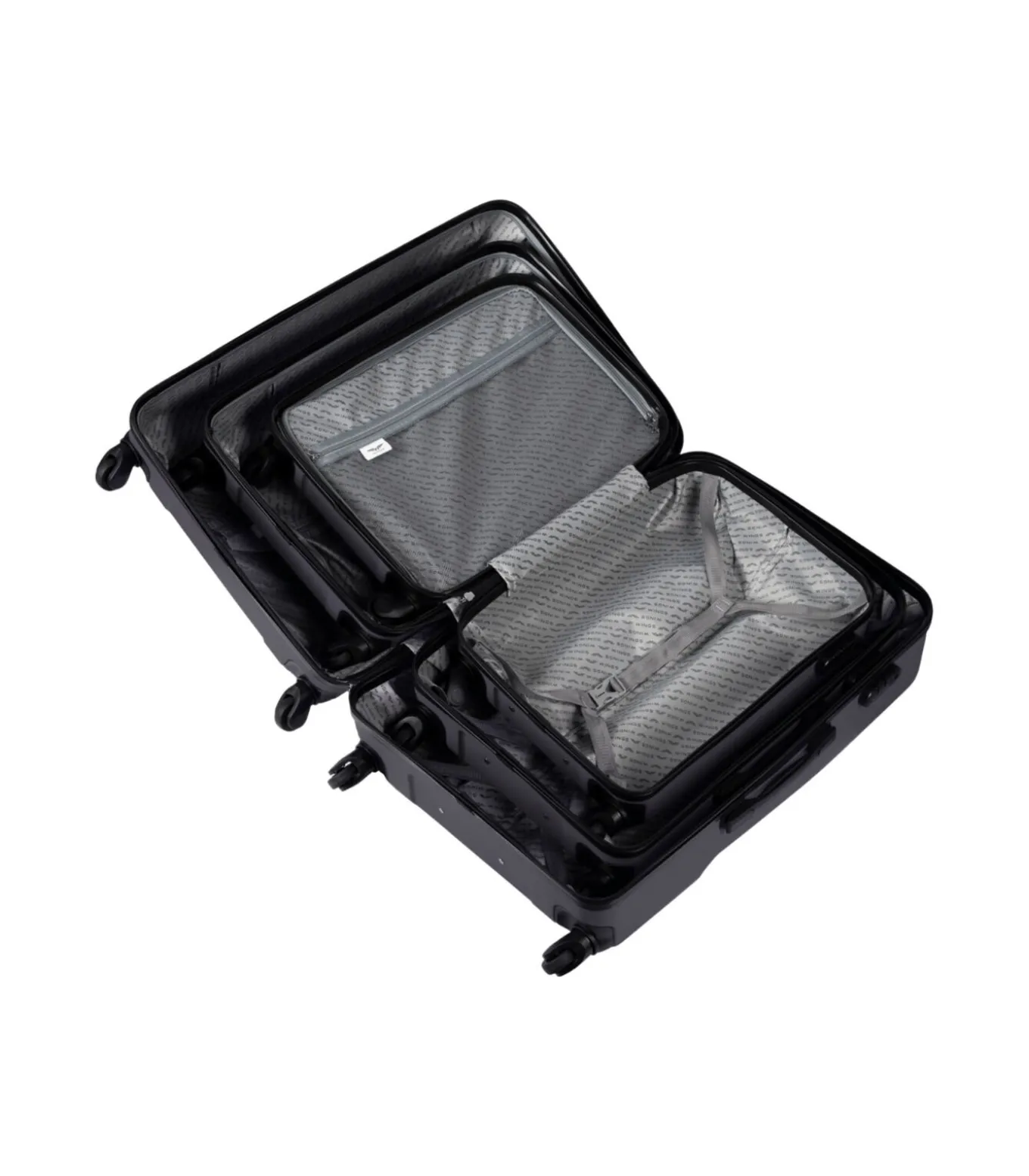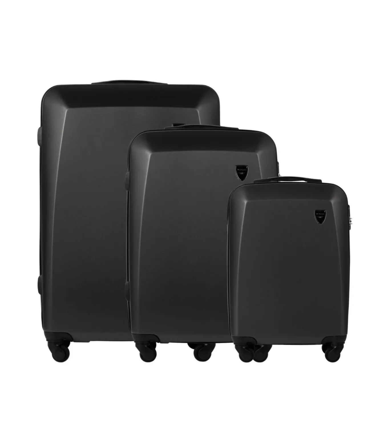 De WINGS PLOVER kofferset bestaat uit drie robuuste hardschalige koffers in de maten L, M en S en is ideaal voor elk soort reis – van weekendtrips tot langere vakanties. De koffers zijn gemaakt van ABS+ (acrylonitrilbutadieenstyreen) van hoge kwaliteit en bieden een hoge slagvastheid en dimensionale stabiliteit terwijl ze toch licht blijven.Dankzij vier soepel lopende dubbele wielen die 360 graden kunnen draaien, zijn alle koffers bijzonder gemakkelijk te manoeuvreren. Een in twee stappen in hoogte verstelbare telescopische handgreep zorgt voor comfortabel gebruik, ongeacht je lengte. De geïntegreerde combinatiesloten zorgen voor veiligheid en beschermen je bagage op betrouwbare wijze tijdens het reizen.Binnenin zitten elastische dwarsbanden om de inhoud veilig op zijn plaats te houden tijdens het transport. De set is ontworpen om ruimte te besparen: Alle drie de koffers kunnen handig in elkaar worden opgeborgen, wat het opbergen vergemakkelijkt.De maten in één oogopslag: De grote versie meet ca. 76 x 50 x 27 cm, de medium ca. 66 x 43 x 24 cm en de cabine maat ca. 57 x 38 x 19,5 cm. Maattolerantie: +/– 2 cm. De volumes zijn ongeveer 97 liter (L), 63 liter (M) en 38 liter (S). De gewichten zijn ongeveer 3,9 kg, 3,3 kg en 2,5 kg.De WINGS PLOVER set overtuigt niet alleen door zijn functionaliteit, maar ook door zijn moderne design en gebruiksgemak – een betrouwbare metgezel voor elke reis.