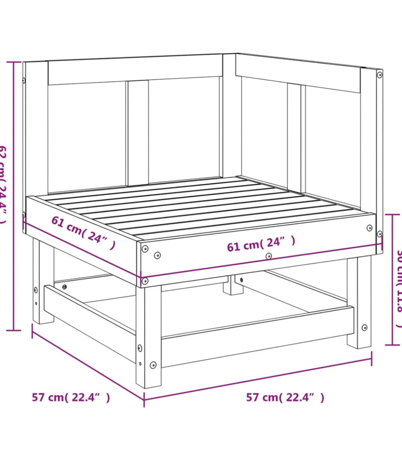 Afmetingen: 61 x 61 x 62 cm (B x D x H)