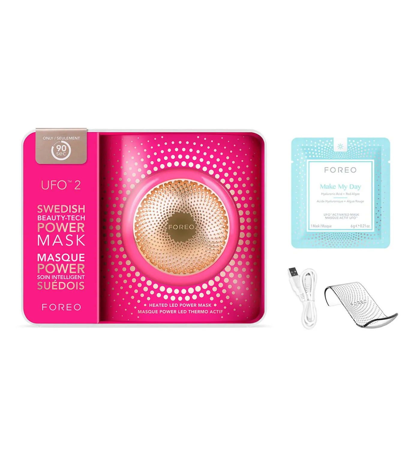 Een schoonheidsspa in de palm van je handKrijg jouw droomhuid in slechts 2 minuten met UFO™ 2 – de ultieme, krachtige full–facial voor thuis voor een direct gevoede, natuurlijk gezonde gloed vanaf het eerste gebruik. UFO™ 2 biedt professionele resultaten dankzij de combinatie van vier technologieën en volledige personalisatie. Het apparaat warmt de huid 5x sneller op en combineert dit met een ontspannende, kenmerkende T–Sonic™ massage voor het hyperinfusie–effect. Hierbij worden actieve bestanddelen van het masker dieper in de huid geduwd, waar ze het meest significante en langdurigste effect hebben. UFO™ 2 biedt ook full–spectrum LED–lichttherapie die revitaliseert, tekenen van veroudering vermindert en de algehele huidtextuur verbetert voor een felbegeerde gladde, zachte huid. Eindig de behandeling met koeling om vocht in te sluiten en zichtbare zwellingen te verminderen. Herdefinieer zelfzorg als een blijvend resultaatgericht ritueel voor thuis met ’s werelds eerste hand–held full–facial gezichtsspa–ervaring! Dankzij de Geavanceerde Temperatuurregeling is UFO™ 2 nu compatibel met de meeste bladmaskers* + ALLE UFO™ Geactiveerde Maskers*LET OP: Warmte en kou beïnvloeden huidverzorgingsproducten op verschillende manieren en kunnen de ingrediënten in de formules aantasten. Voor optimale veiligheid raden wij je ten sterkste aan de effecten van temperatuur op een niet–FOREO masker te onderzoeken voordat je het met UFO™ versterkt
