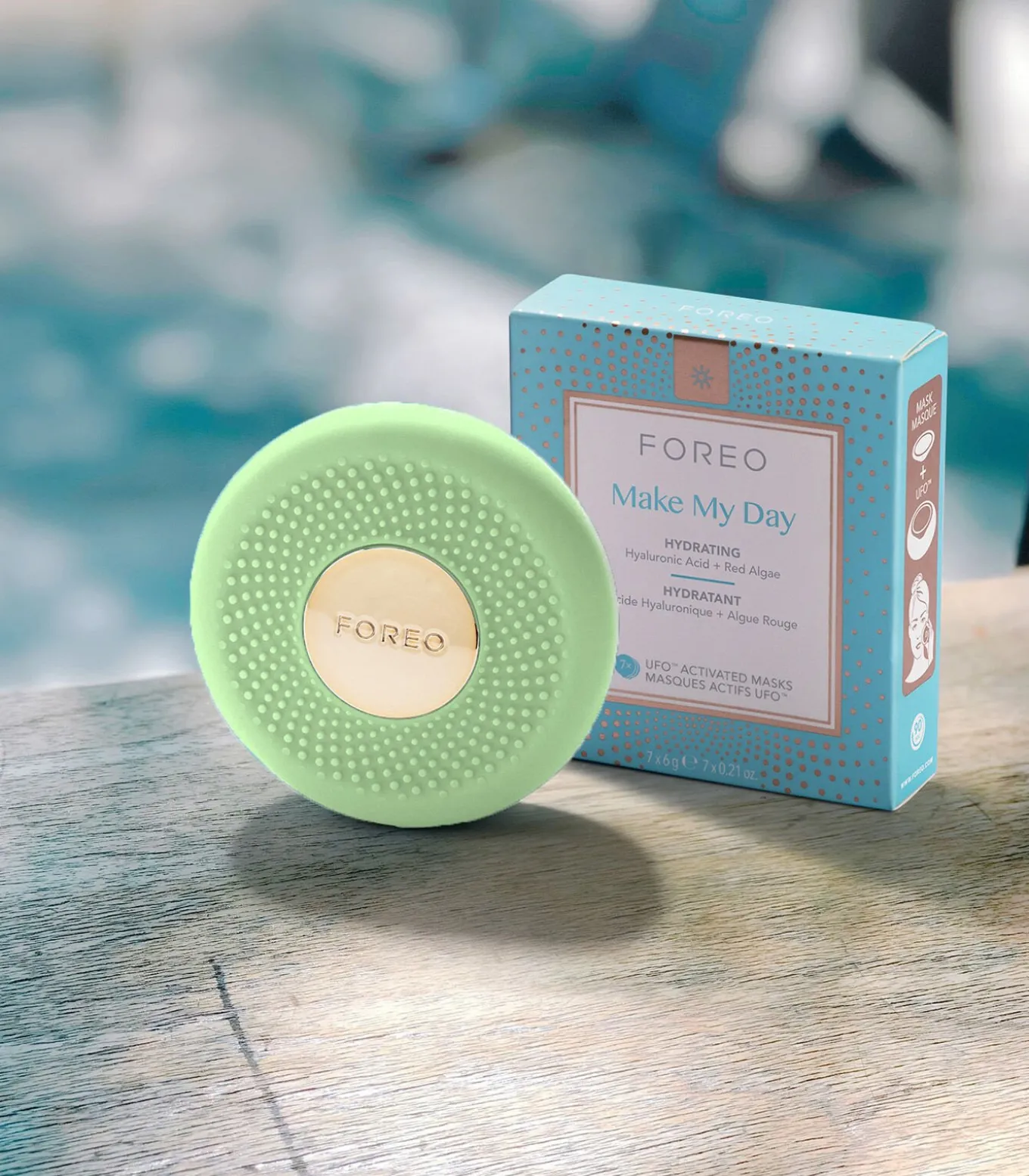 ONMIDDELLIJKE DIEPE HYDRATATIE & GLOW – ALTIJD EN OVERALOndanks het kleine formaat is de UFO™ 3 go in staat om een skincare revolutie te starten! UFO™ 3 go verwent je huid, behandeling na behandeling, waar het avontuur ook naartoe gaat. Laat je niet misleiden door het compacte, reisvriendelijke formaat. Het kleine zusje van de UFO™ 3 deelt dezelfde technologie en personalisatie mogelijkheden, waardoor zelfs de meest veeleisende gebruiker onder de indruk is. Dankzij het reisvriendelijke formaat van de UFO™ 3 go, kun jij de kracht van UFO™ 3 eenvoudig overal mee naartoe nemen.Naarmate we ouder worden, verliest de huid vocht. Dit tast de huidstructuur aan, waardoor deze kwetsbaarder wordt voor barsten, breken, rimpels, vlekken, dofheid, ontstekingen, wallen, kringen onder de ogen en gevoeligheid. Van UFO™ 3 go is bewezen dat het de hydratatie in 2 minuten met 126% verhoogt en de zichtbaarheid van rimpels in 7 dagen vermindert. De thermo–therapie helpt de huid om de ingrediënten en het vocht van het masker dieper te absorberen, verbetert de elasticiteit en maakt de huid voller, zachter en gladder. LED–lichttherapie met een volledig spectrum licht stimuleert de collageenproductie en verfijnt de huid, bestrijdt lijntjes, oneffenheden en dofheid. Geniet van een diepe T–Sonic™ massage om de spanningspunten in de gezichtsspieren te ontspannen en stimuleert de bloedsomloop om voedingsstoffen en zuurstof naar elke huidcel te brengen voor een frisse glow. De Easy Mode is ontworpen voor persoonlijke zelfzorg en biedt toegang tot 8 van je eigen aangepaste behandelingen in offline modus. Bewezen effectiever dan een sheet mask alleen en UFO™ 3 go gaat perfect samen met UFO™ geactiveerde maskers en FOREO’s dual–mode sheet masks. Voldoe aan alle behoeften vna je huid en verken de voorgeprogrammeerde behandelingen voor de allerbeste resultaten, of creëer jouw eigen behandelingen. Locaties zijn irrelevant. Routines zijn belangrijk.