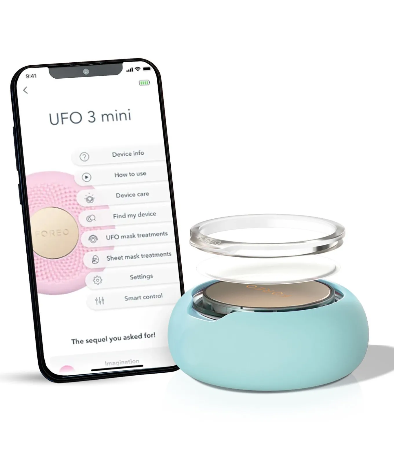 SKINCARE VOOR STARTERS: MINI VOOR MAXIMAAL RESULTAAT IN 2 MINUTENDe UFO™ 3 mini is ideaal voor degenen die nog maar net begonnen zijn met skincare en biedt een snelle oplossing voor een gezonde, energieke en stralende huid in slechts 2 minuten. De UFO™ 3 mini zit vol met functies die in populaire skincare apparaten te vinden zijn, heeft veel personalisatiemogelijkheden en is een perfecte introductie aan gezichtsbehandelingen thuis!Naarmate we ouder worden, verliest de huid vocht. Dit tast de structuur aan en maakt de huid kwetsbaarder voor barsten, scheuren, rimpels, vlekken, dofheid, ontstekingen, wallen, kringen onder de ogen en gevoeligheid. Het is bewezen dat UFO™ 3 mini de hydratatie van de huid met 126% verhoogt in 2 minuten en de zichtbaarheid van rimpels vermindert in 7 dagen. Thermo–therapie helpt de ingrediënten en het vocht van het masker dieper in de huid door te dringen, verbetert de elasticiteit en maakt de huid voller, zachter en gladder, terwijl full–spectrum LED–lichttherapie de collageenproductie stimuleert en fijne lijntjes, oneffenheden en dofheid bestrijdt. Geniet van een diepe T–Sonic™ massage om de spanningspunten in de gezichtsspieren te ontspannen en stimuleert de bloedsomloop om verse voedingsstoffen en zuurstof naar elke huidcel te brengen voor een frisse glow.De nieuwe en verbeterde generatie is ontworpen voor gepersonaliseerde zelfzorg en beschikt over de Easy Mode, die toegang geeft tot 8 van jouw eigen aangepaste behandelingen in offline modus. Bewezen effectiever dan een sheet mask alleen, UFO™ 3 mini is perfect te combineren met UFO™ geactiveerde maskers en FOREO’s dual–mode sheet masks. Voldoe aan alle behoeften van je huid en ontdek de voorgeprogrammeerde behandelingen voor de beste resultaten, of creëer jouw eigen behandelingen.