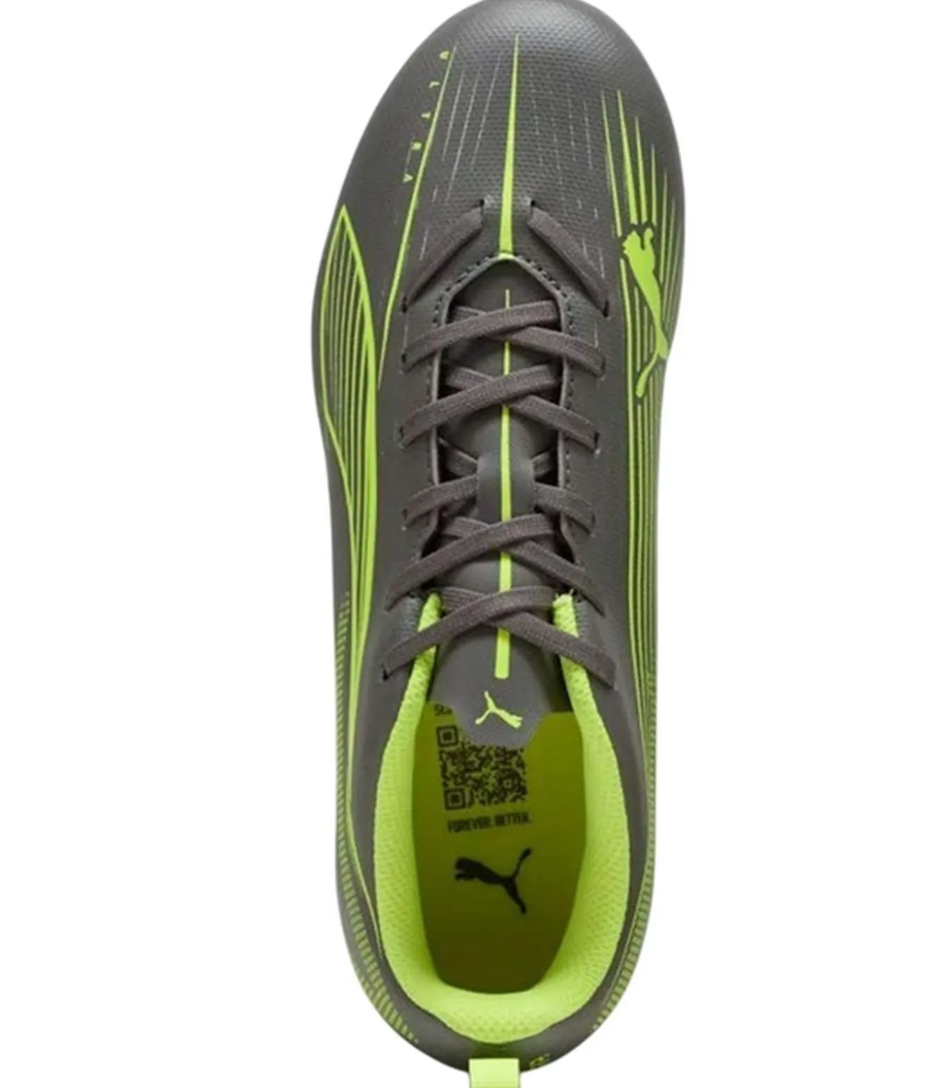 Puma Ultra 5 Play–boots in grijs met sokvoering, Softfoam+ binnenzool, lichtgewicht stoftechnologie en vlakke zolen. Het ontwerp is voorzien van patroonleer, een rond teensysteem en een embleem. Het voetwear is laag gesneden met zes oogjes en heeft een vetersluiting. Deze stevige grond geschikte boots zijn gepatenteerd en beschikbaar in de kleur grijs.