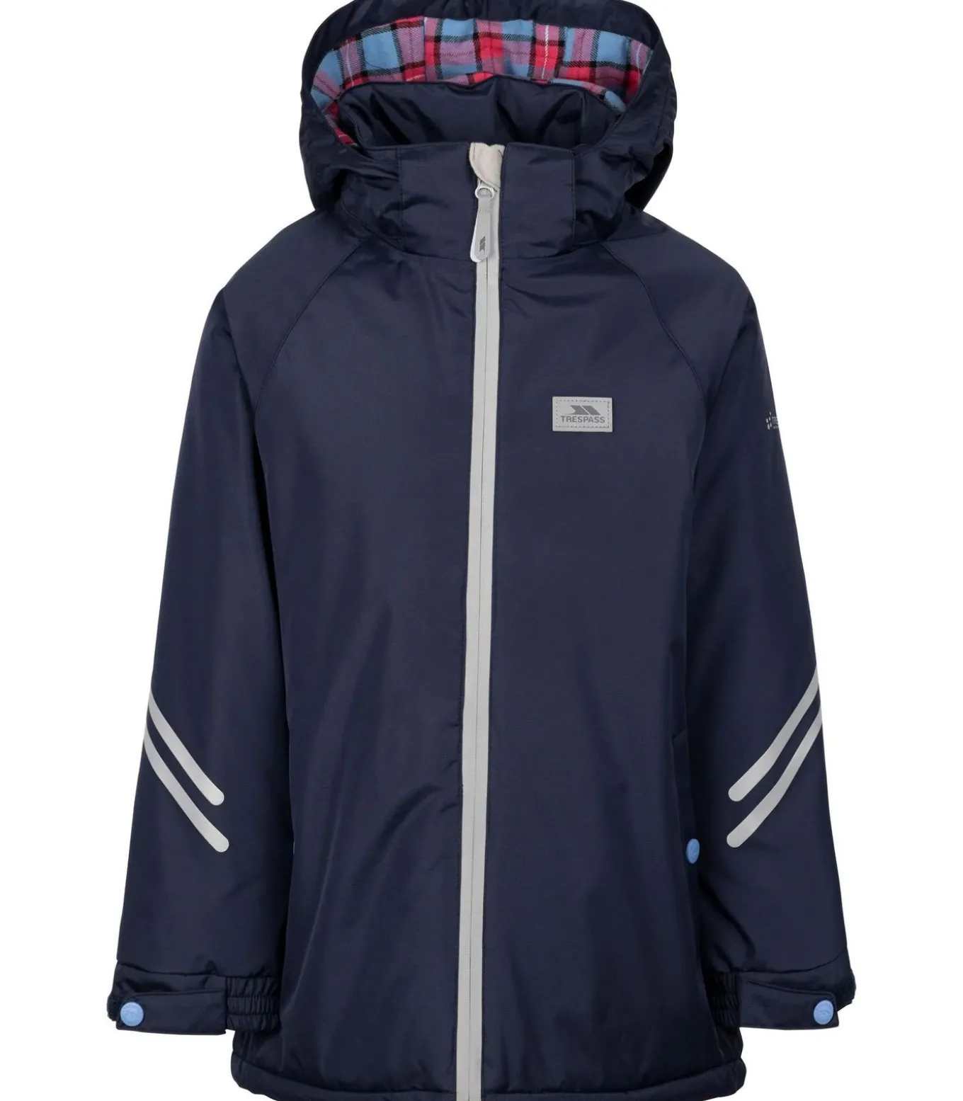 Trespass Valleyfield Waterdichte Jas voor kinderen Deze jas heeft een buitenkant van 100% polyester met een PVC–coating voor waterdichte bescherming. De vulling is gemaakt van 100% polyester voor isolatie. De binnenvoering is ook van 100% polyester. Het heeft het Trespass logo–ontwerp. De stoftechnologie biedt waterdichte functionaliteit. De manchetten hebben verstelbare polsbandjes, met enige elasticiteit. De achterkant van de jas is langer dan de voorkant en heeft padding, samen met reflecterende details voor zichtbaarheid bij weinig licht. De hals heeft een afneembare capuchon. De mouwen zijn lang. De zakken bestaan uit twee zijzakken met contrasterende stof en drukknopen. De ritssluiting aan de voorkant is een doorlopende contrasterende rits. De jas heeft een waterdichtheid van 3000 mm.