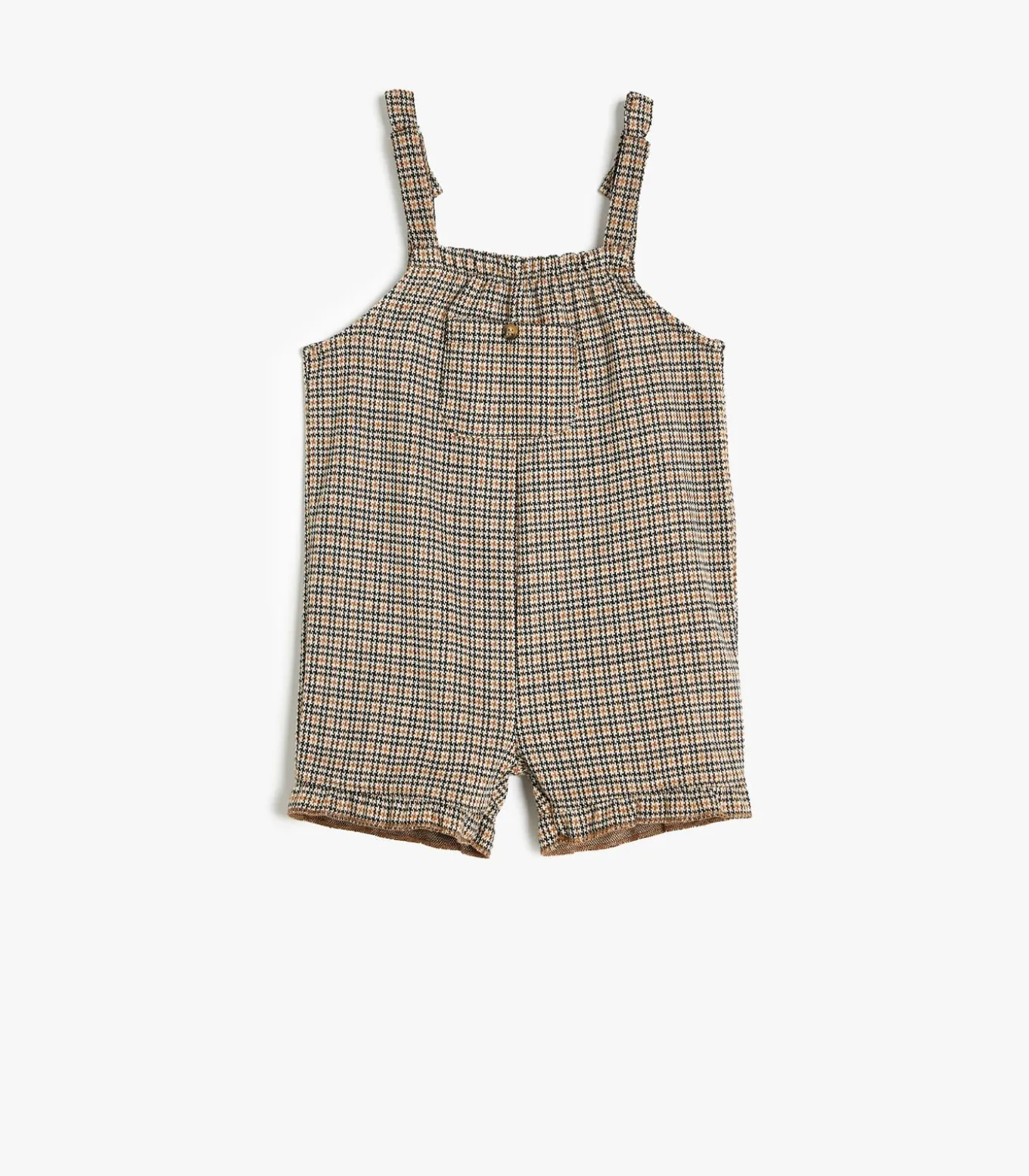 Ruches Gedetailleerd plaid Vorm A Appliqué enkele zak Normale lengte Mouwloos Vierkante kraag Jumpsuit