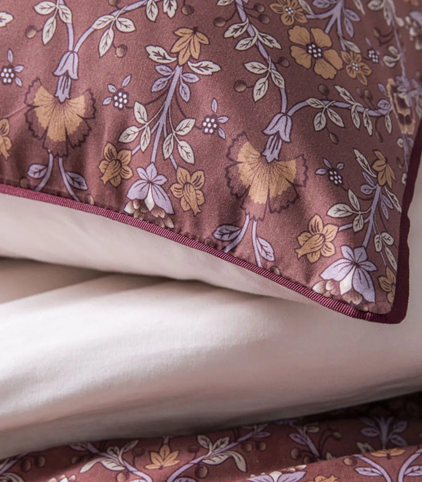 Virginia, vrouwelijk en delicaat, biedt een decor in cottage stijl. Dit warme model is geïnspireerd op de Engelse romantiek en decoratieve kunsten. Geraffineerd bedlinnen, verfraaid met prachtige afwerkingen. Met een lichtroze achterkant om de Virginia print een zacht accent te geven