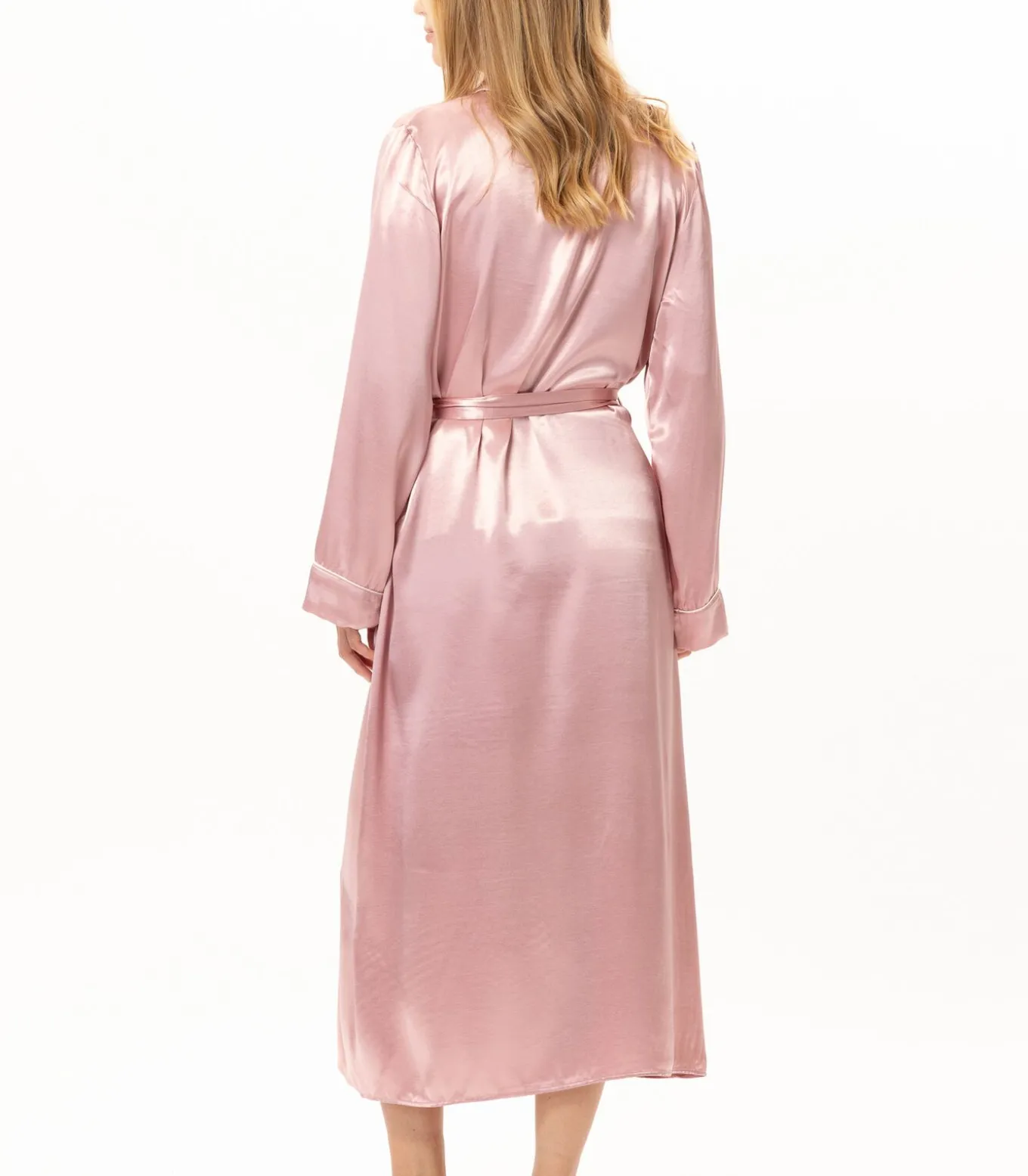Verkrijgbaar in drie kenmerkende kleuren: lichen, roze en parelmoer; de Darcy kamerjas vormt een aanvulling op uw nachtkleding, zoals het Darcy nachthemd of de Darcy pyjama, voor een chique totaallook zodra u uit bed stapt.