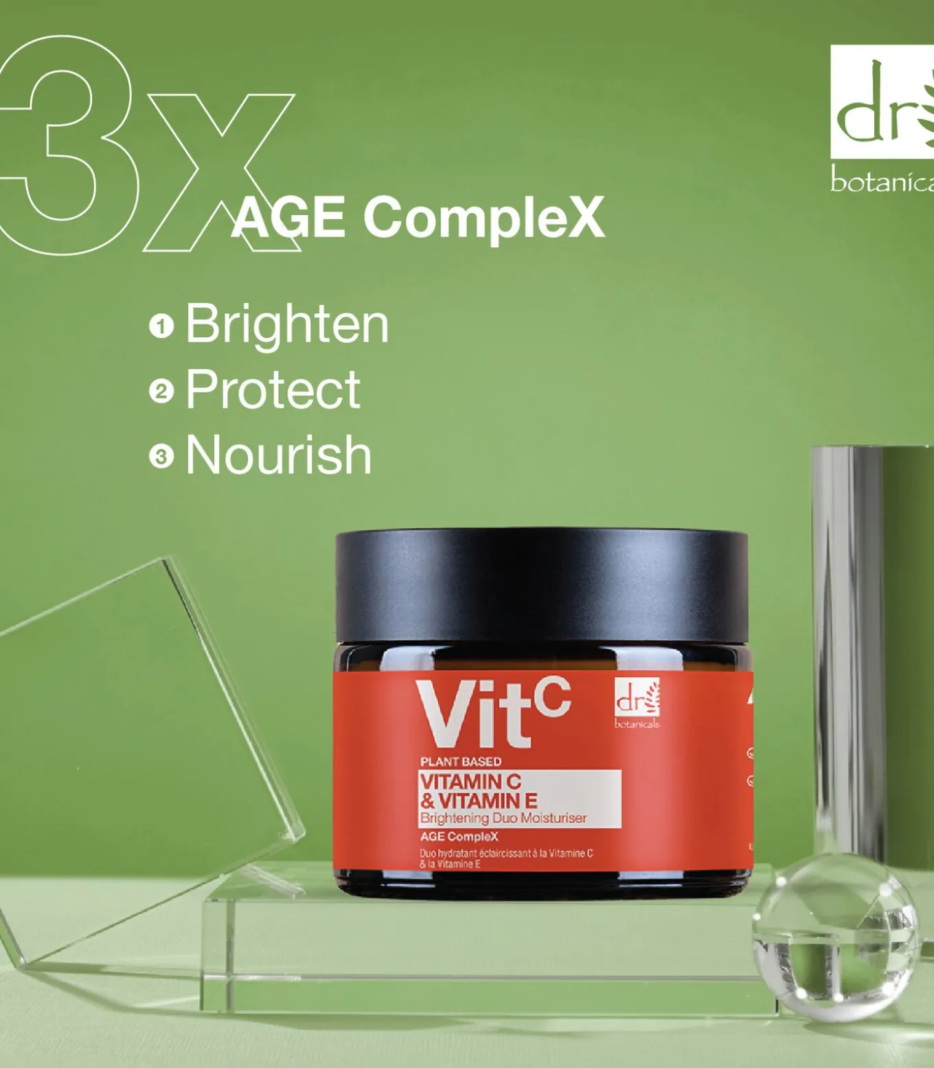 Maak kennis met onze Vitamin C & Vitamin E Brightening Day and Night Duo Moisturiser. Volgeladen met huidverzorgende ingrediënten, zoals Vitamine C, dat kan helpen de natuurlijke teint te verhelderen. Daarnaast bevat het Vitamine E, dat kan helpen de huid te beschermen tegen vrije radicalen en omgevingsstressoren. Kokosolie heeft als doel de huid te voeden en te hydrateren. Deze ingrediënten werken samen om een allesomvattende anti–aging moisturizer te bieden, die je huid helpt zijn jeugdige charme en vitaliteit terug te krijgen.