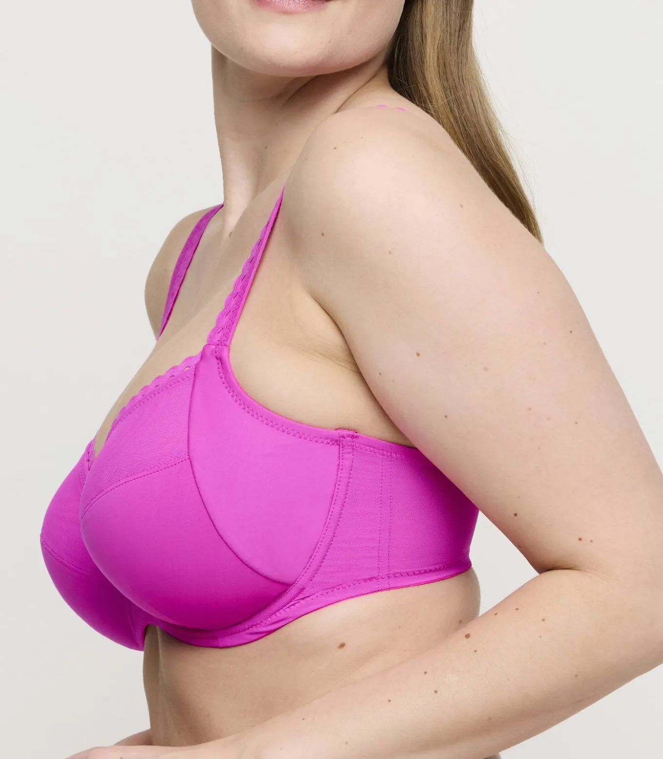 Volle cup bh met een beugel en een stevige dubbeling. Deze snit bedekt je borsten comfortabel. De gedubbelde ondercups geven grotere cupmaten een comfortabele lift, het zijstukje centreert je boezem voor een rond silhouet.