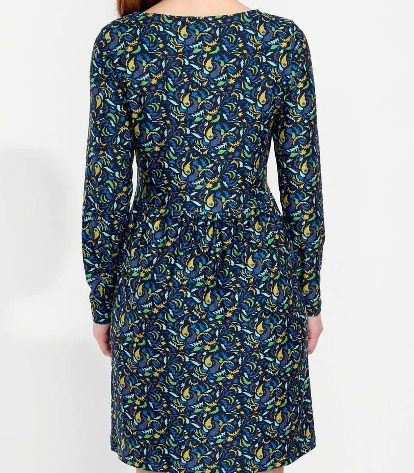 Dress met uitsnijding boven de taille en gerimpelde onderkant