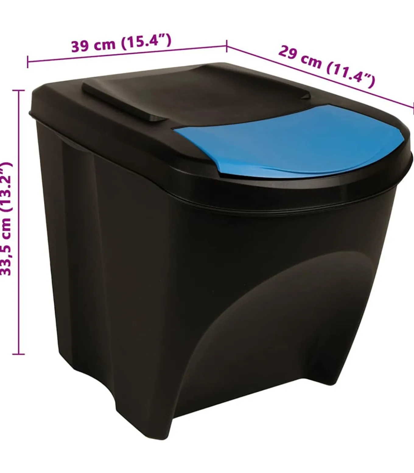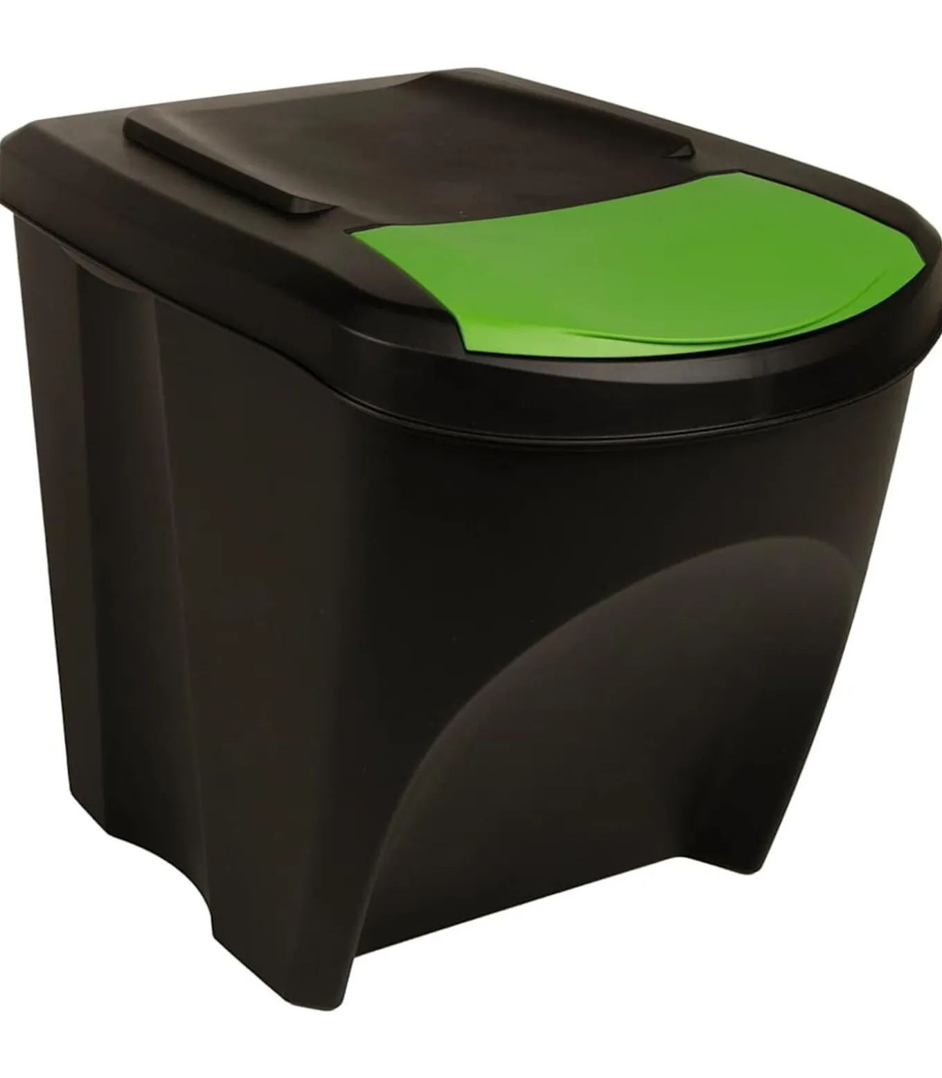 De prullenbak is gemaakt van polypropyleen waardoor hij sterk, lichtgewicht en makkelijk schoon te maken is. Het deksel is afneembaar, waardoor de bak gemakkelijk en snel kan worden schoongemaakt. Dankzij de afvalscheidingslabels is het sorteren van afval zeer gemakkelijk. Door het stapelbare ontwerp bespaar je ruimte.