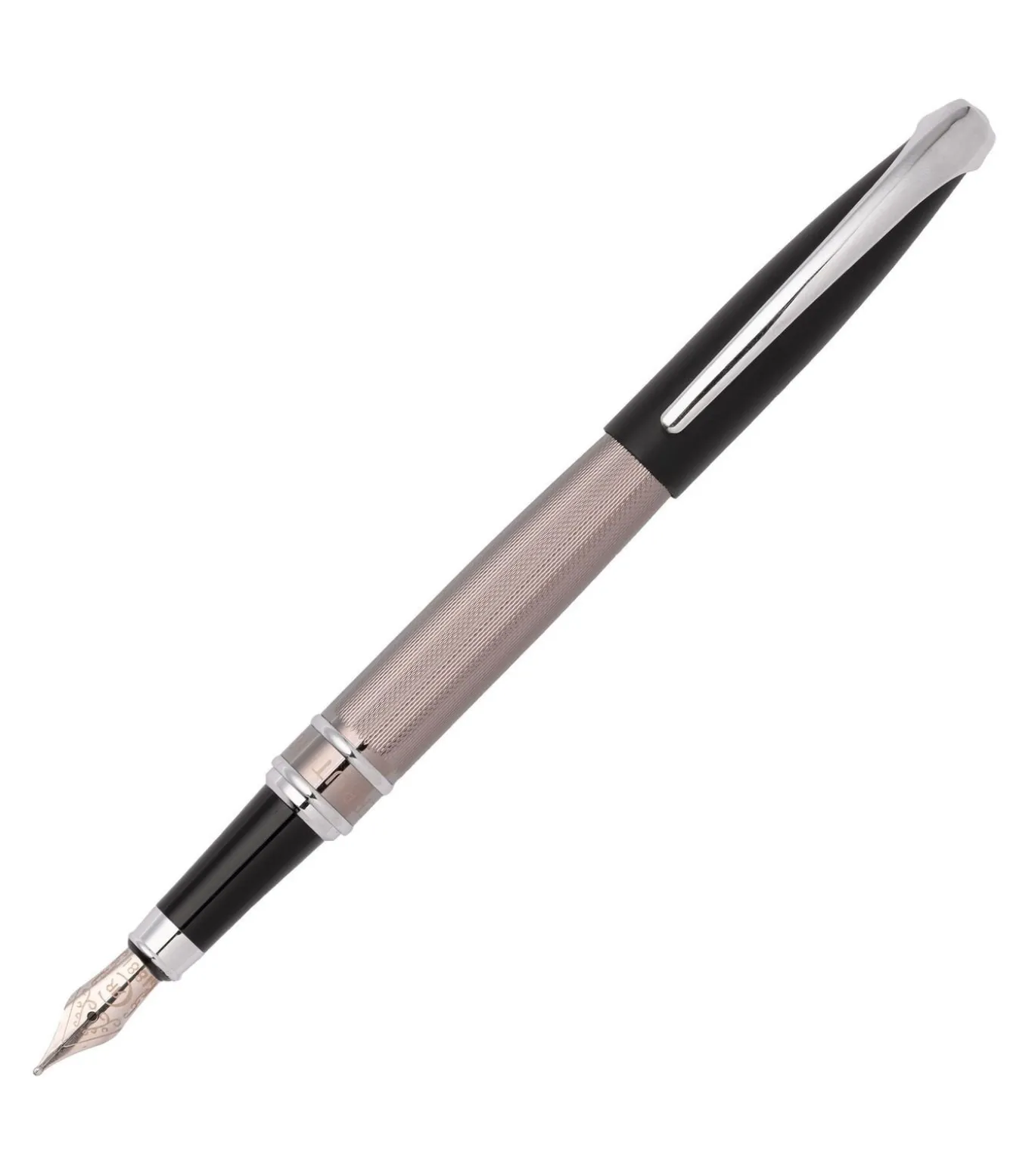 De “Abbey” pen is gebaseerd op een van de meest iconische silhouetten van Cerruti’s schrijflijn. De pen is nu opnieuw uitgevonden door een matzwarte lakafwerking te mengen met een diamantgeslepen gegraveerde onderste loop, modern en elegant. Dimensions: DIA.12/H.139 mm, Material: Brass,Matt plated,Gun plating,Metallic paint (shiny), Chrome plating