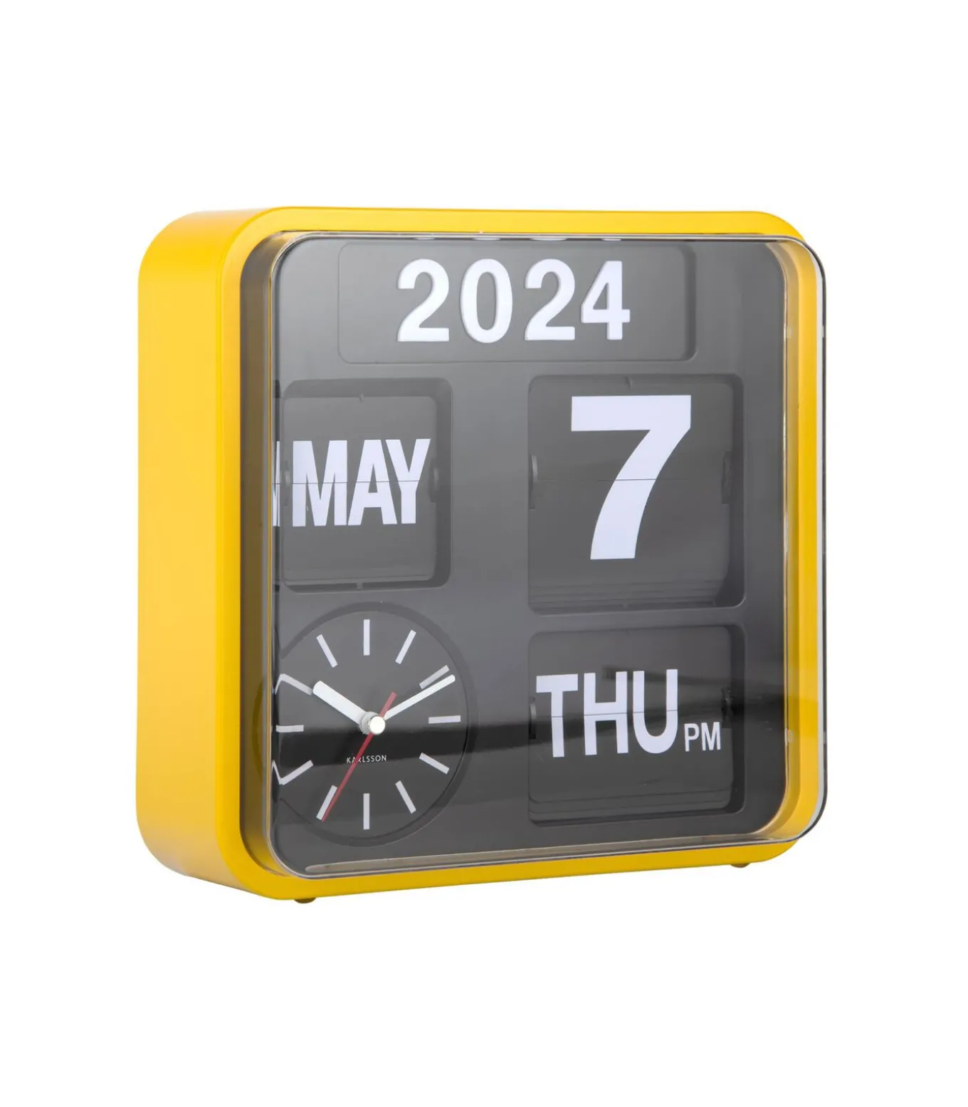 Wandklok Mini Flip – Okergeel – 10x24x24cm