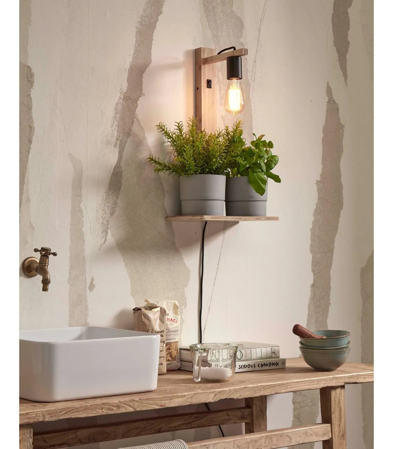 De Flores wandlamp van bamboe met plank is een unieke en subtiele toevoeging naast uw bank, bed of leesstoel. Het ontwerp met een open lichtbron creëert een interessant effect dat mooi past bij uw interieur en die donkere hoekjes verlicht. Met een afmeting van 23x22x38cm is hij ideaal naast uw bed of zelfs in de gang om sleutels op te bergen. De lamp combineert functionaliteit met stijl, waardoor een charmant en praktisch accent in uw woonruimte ontstaat.
