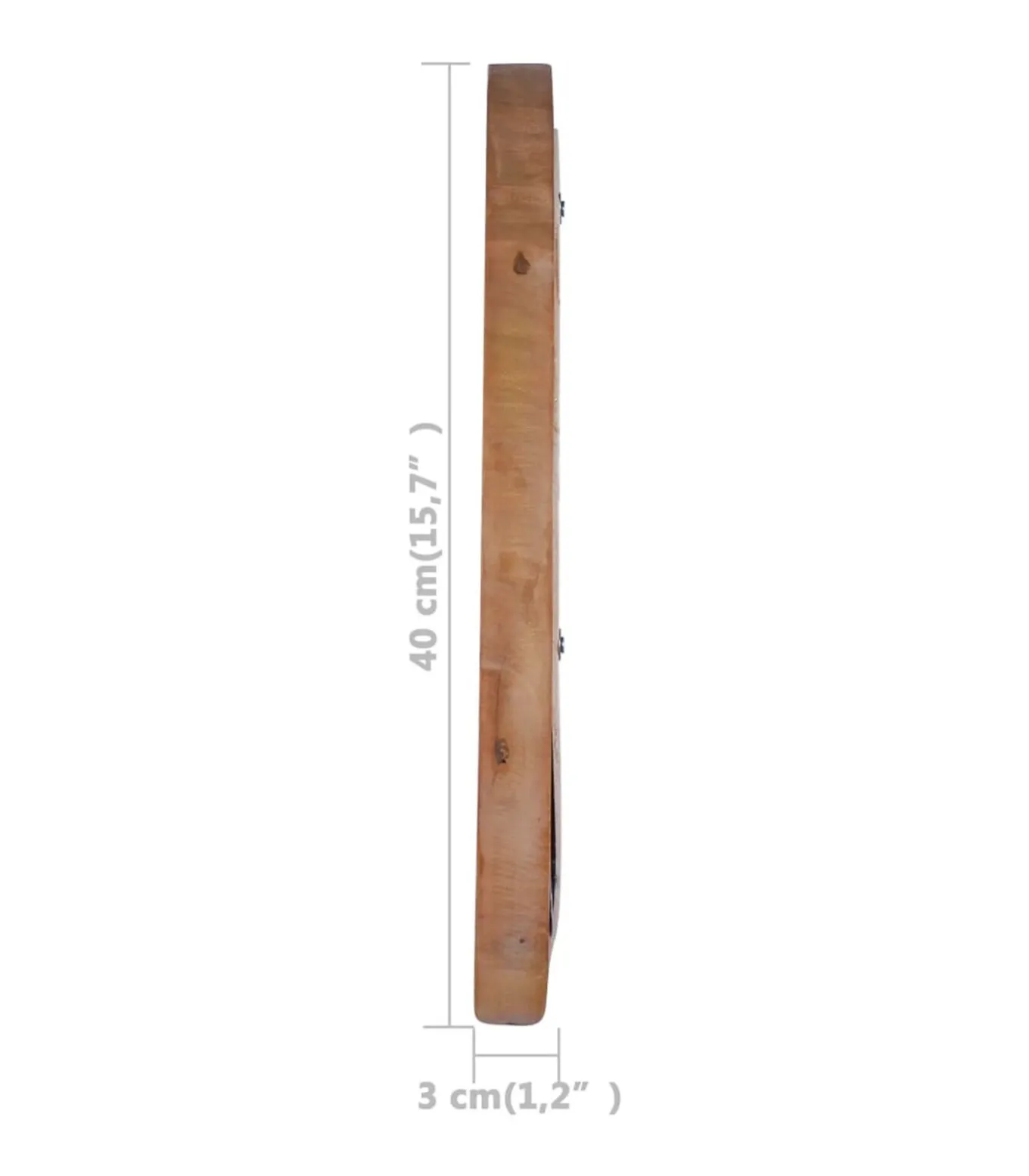 Het frame van de spiegel is met de hand gemaakt van natuurlijke teakhouten takken, wat bijdraagt aan de rustieke stijl van de spiegel. Hij staat geweldig in elke kamer van het huis en kan ook in de badkamer worden gebruikt. De spiegel is klaar om aan de muur te worden gemonteerd dankzij de reeds geïnstalleerde haak aan de achterkant.