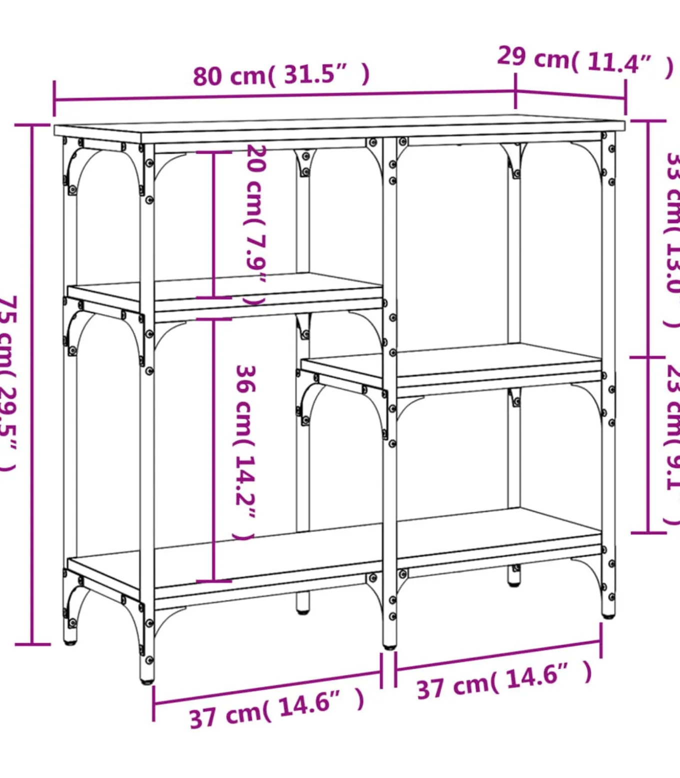 Afmetingen: 80 x 29 x 75 cm (L x B x H)