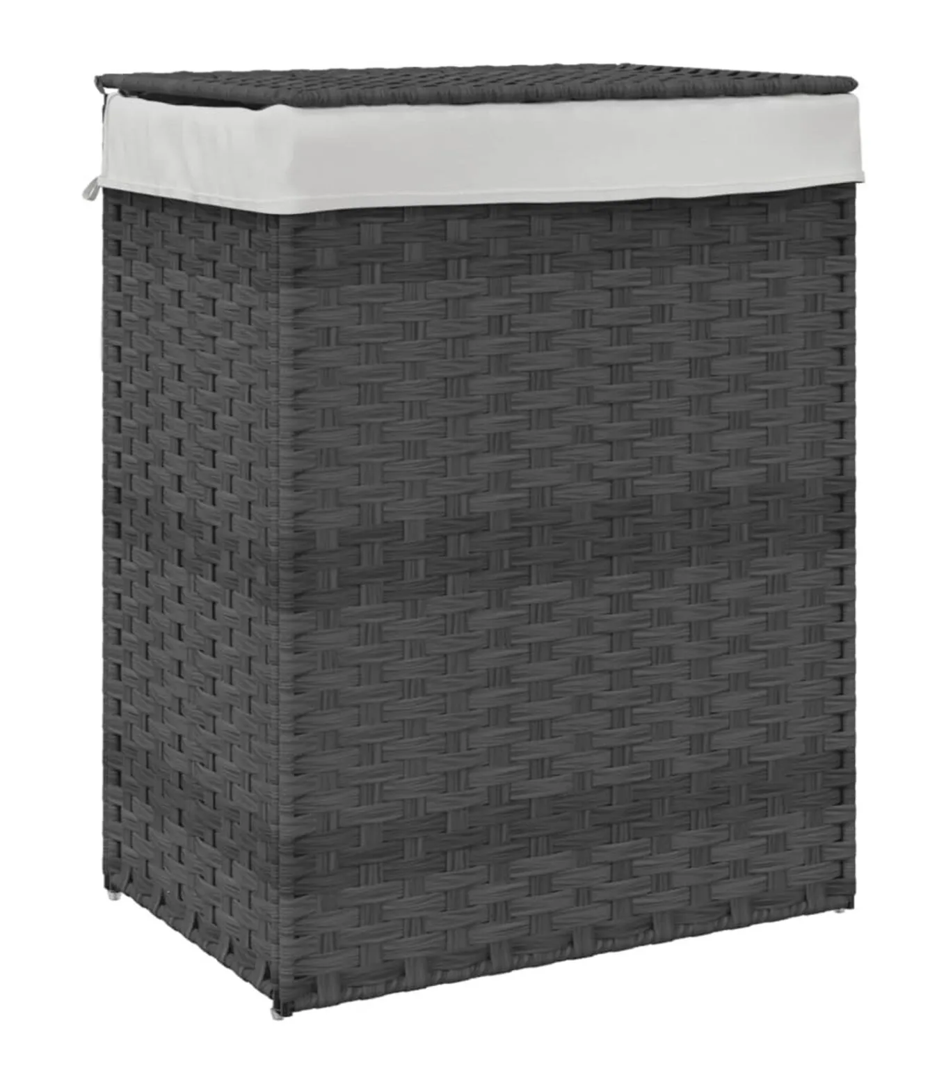 Wasmand met deksel 46x33x60 cm poly rattan grijs