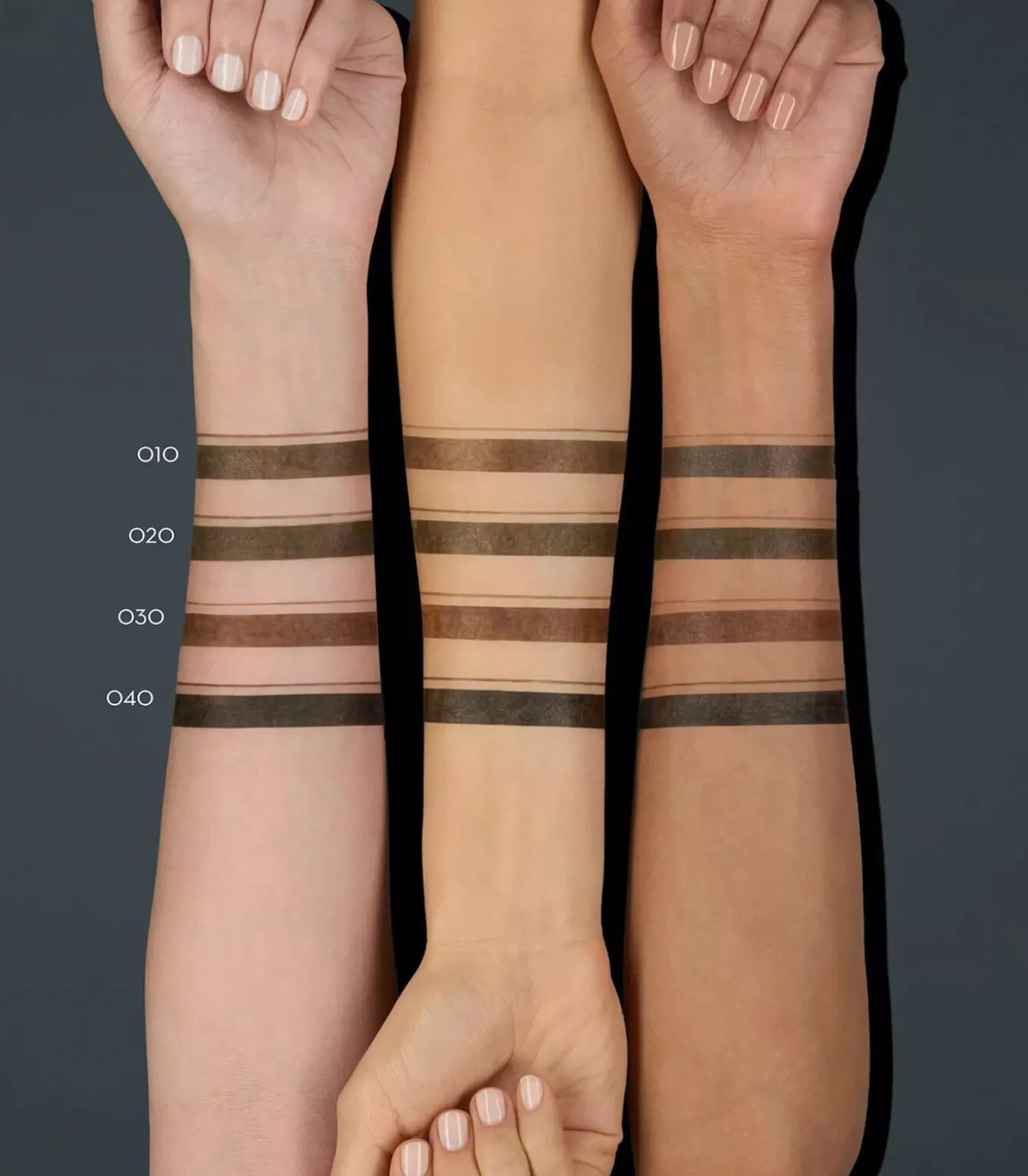 Ingrediënten:AQUA (WATER), ALCOHOL DENAT., STYRENE/ACRYLATES/AMMONIUM METHACRYLATE COPOLYMER, BUTYLENE GLYCOL, POLOXAMER 407, METHYLPROPANEDIOL, SILICA, COCO-GLUCOSIDE, SODIUM LAURETH-12 SULFATE, AMMONIUM HYDROXIDE, XANTHAN GUM, BHT, CITRIC ACID, PHENOXYETHANOL, POTASSIUM SORBATE, CI 77491 (IRON OXIDES), CI 77492 (IRON OXIDES), CI 77499 (IRON OXIDES), CI 77510 (FERRIC AMMONIUM FERROCYANIDE), CI 77891 (TITANIUM DIOXIDE).
