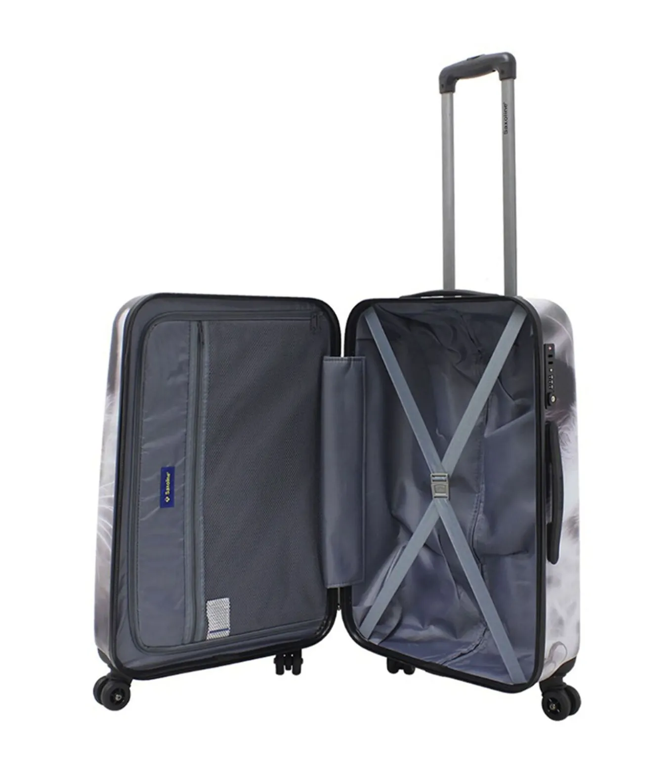 Saxoline White Cat – Ontdek onze bedrukte koffer, waar stijl functionaliteit ontmoet voor moderne reizigers. Gemaakt van duurzame materialen, biedt het voldoende ruimte voor al uw benodigdheden, veilig tijdens uw reizen. De levendige print voegt persoonlijkheid toe, zodat u opvalt. Met soepel rollende wielen en telescopische handgreep is het navigeren eenvoudig. Verbeter uw reiservaring met onze bedrukte koffer!