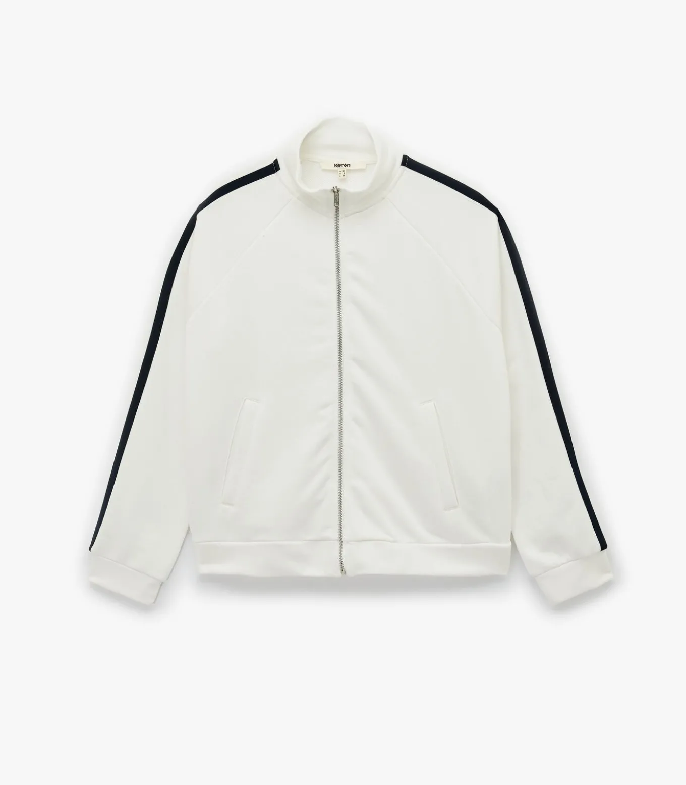 Dit trendy sweatshirt combineert comfort en stijl met een modern ontwerp. Het heeft lange mouwen en een praktische ritssluiting, ideaal voor dagelijks gebruik en sportieve activiteiten. De subtiele streepdetails en steekzakken aan de zijkant bieden een eigentijdse uitstraling.